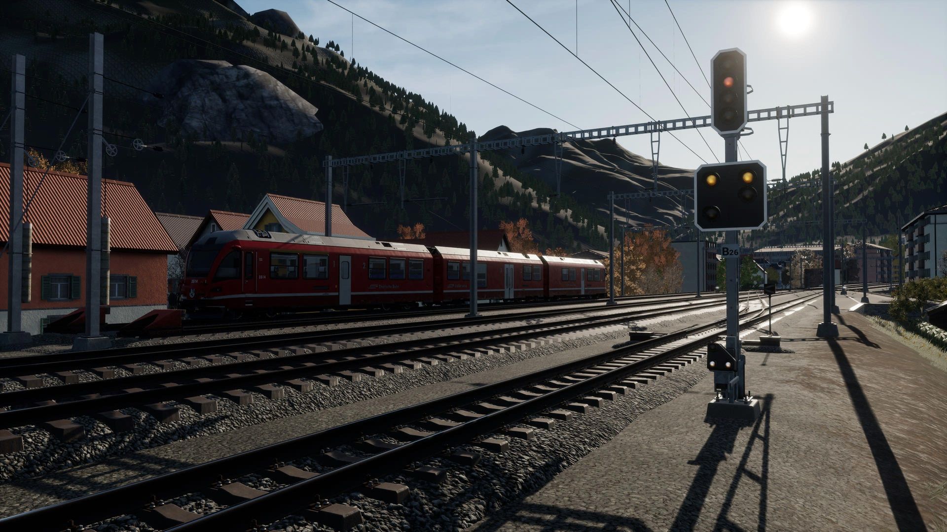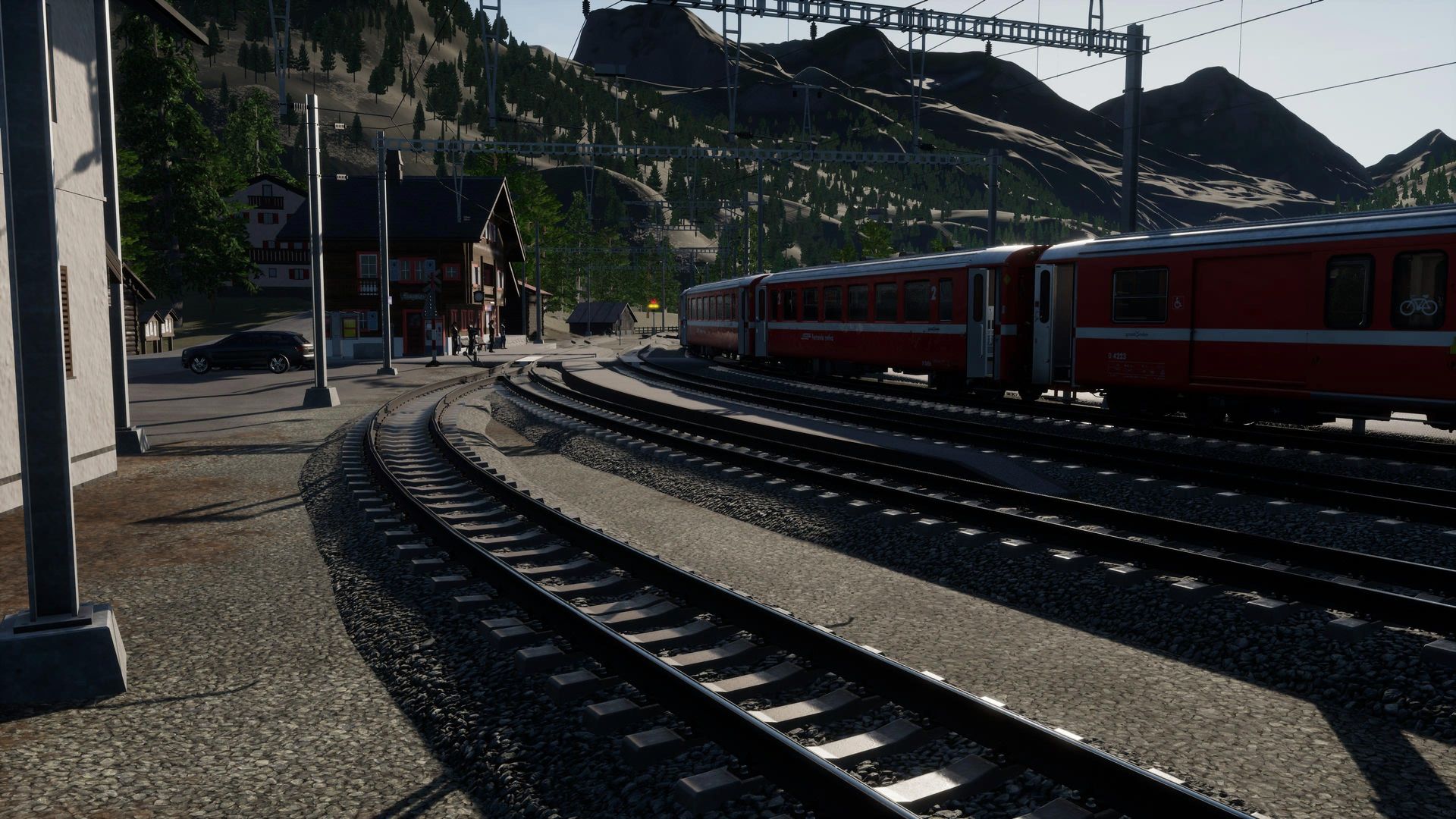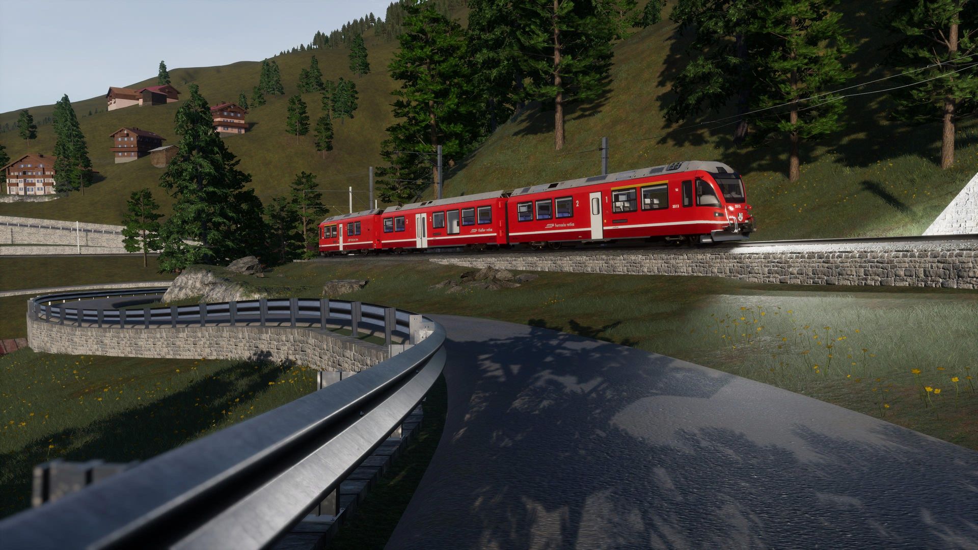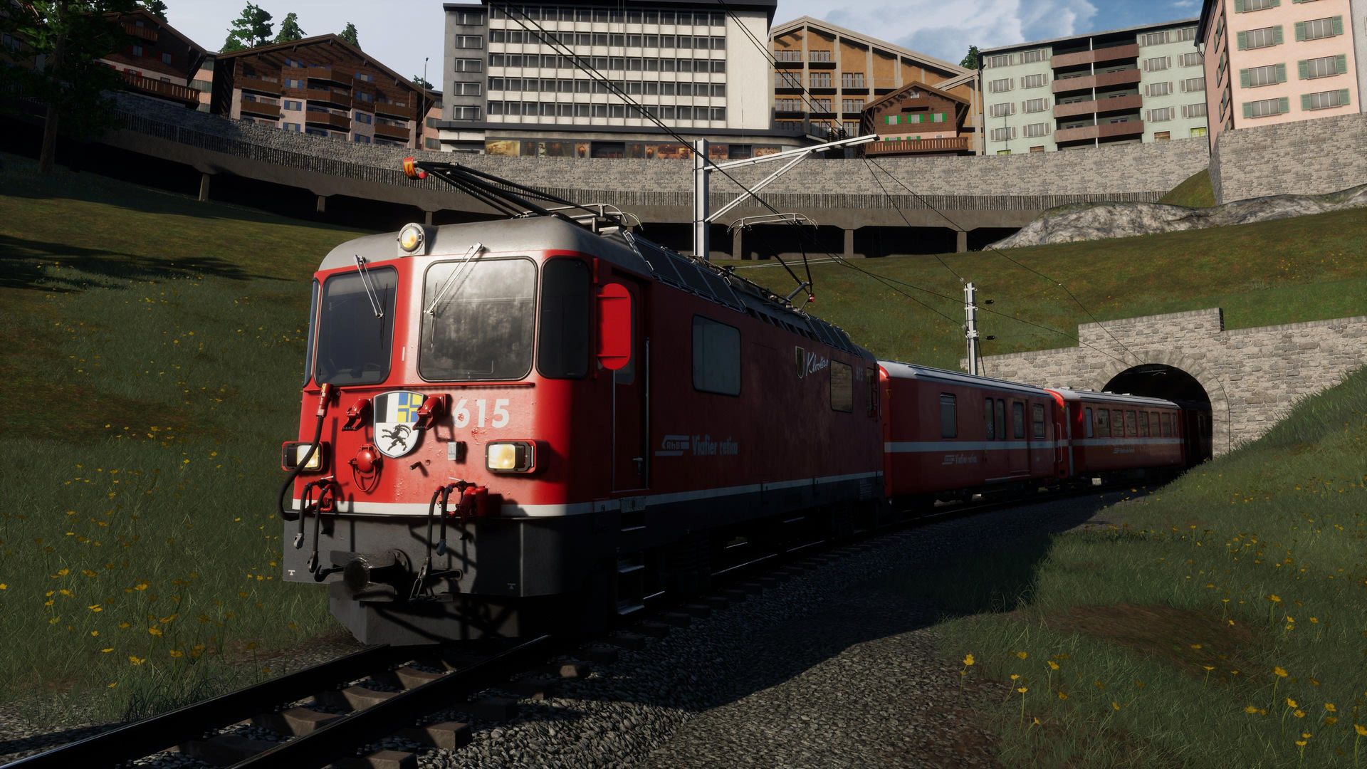Man merkt der Strecke durchaus ihr Alter an, besonders an Details in der Ferne erkennt man, dass die Möglichkeiten der aktuellen TSW Version von neueren AddOns besser genutzt werden. Nichts desto trotz erhält man hier immer noch eine der schönsten, wenn nicht die schönste, Gebirgsstrecke für Train Sim World.