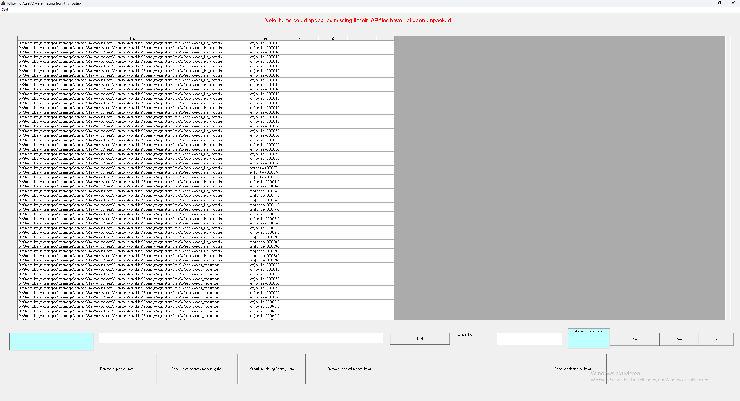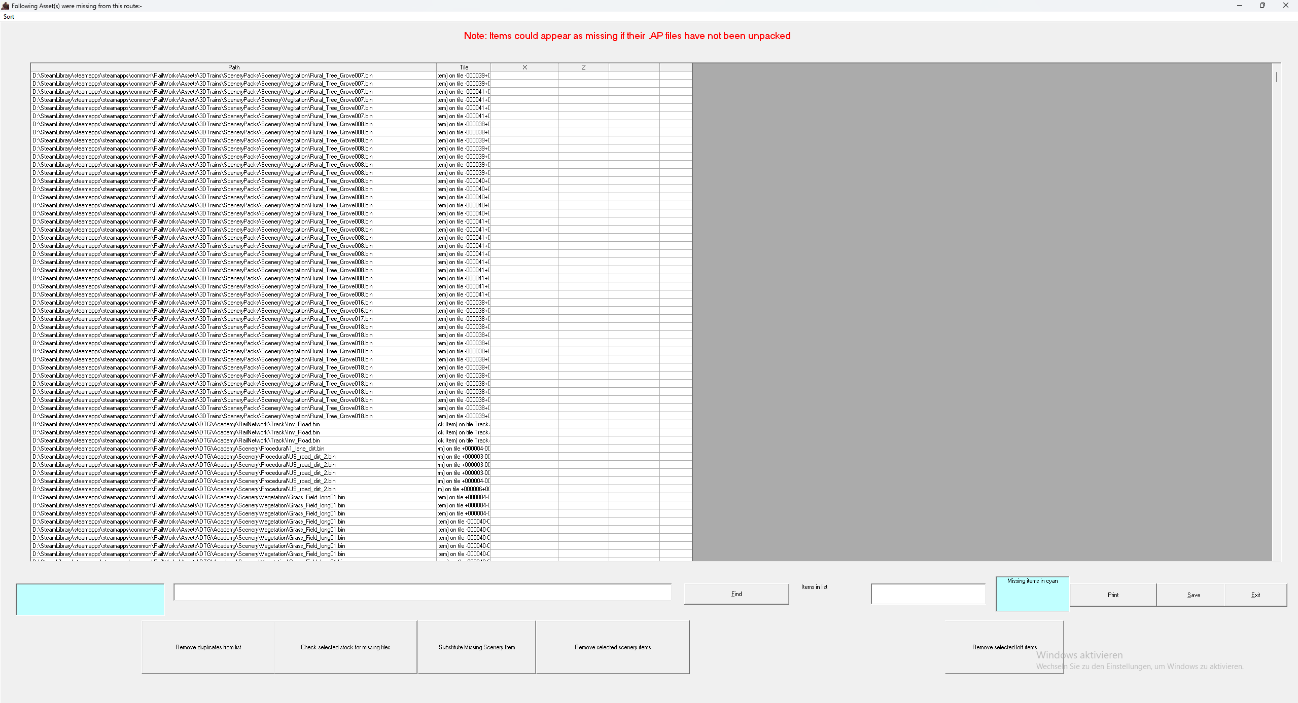 Ich habe mir das Streckenupdate Allgäubahn regenerated von Amisia heruntergelanden, jedoch habe ich das Problem, dass wie auf dem Screenshot zu sehen ist, einige Bodentexturen fehlen. Ich habe die Steam Version der Allgäubahn und alle benötigten Addons außer die Thomson Albula Line. Ebenfalls habe ich alles in der ReadMe genau befolgt und die Strecke mehrmals neuinstalliert. In RW Tools seht, dass auch irgendwelche Academy Assets fehlen.