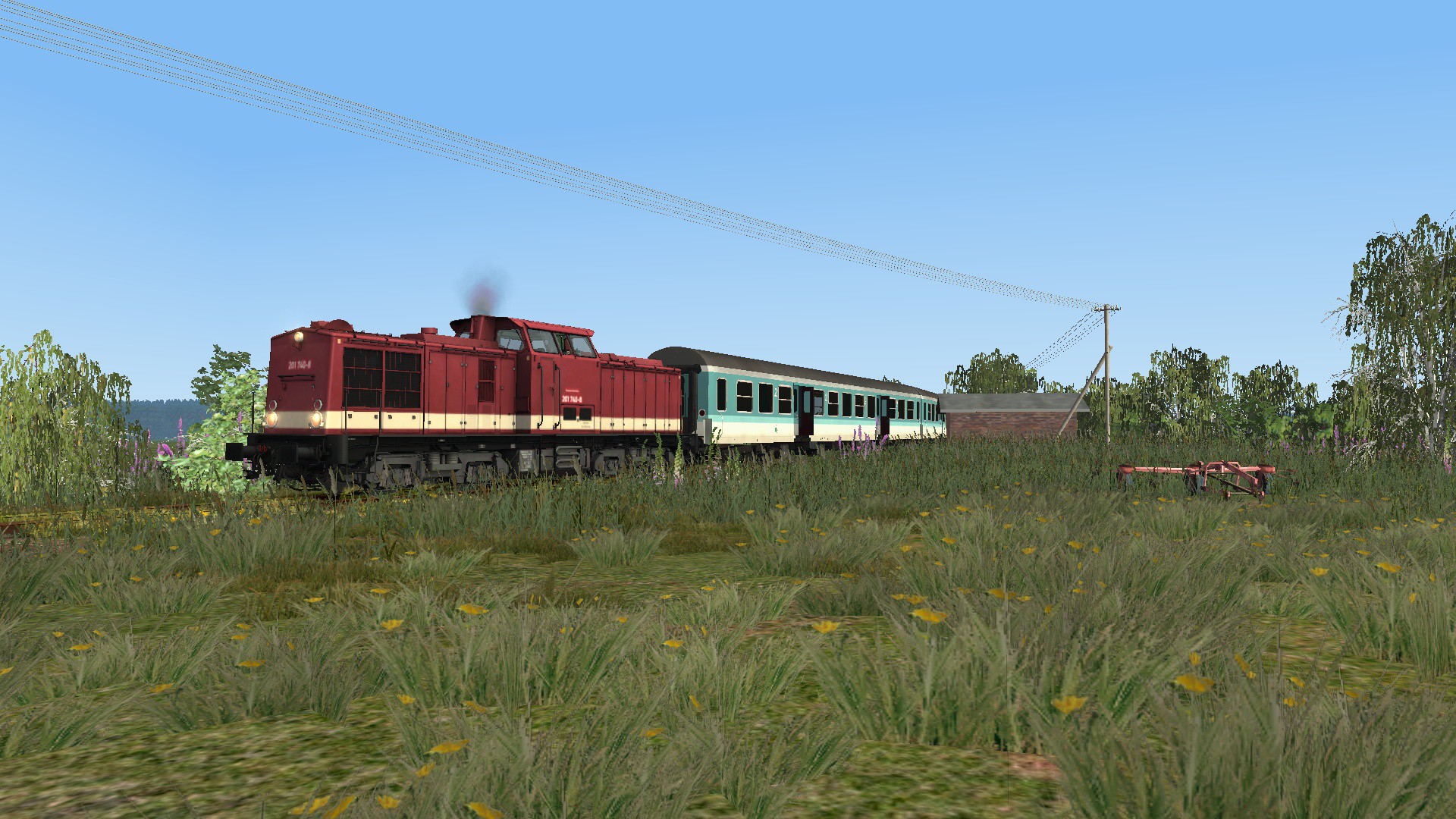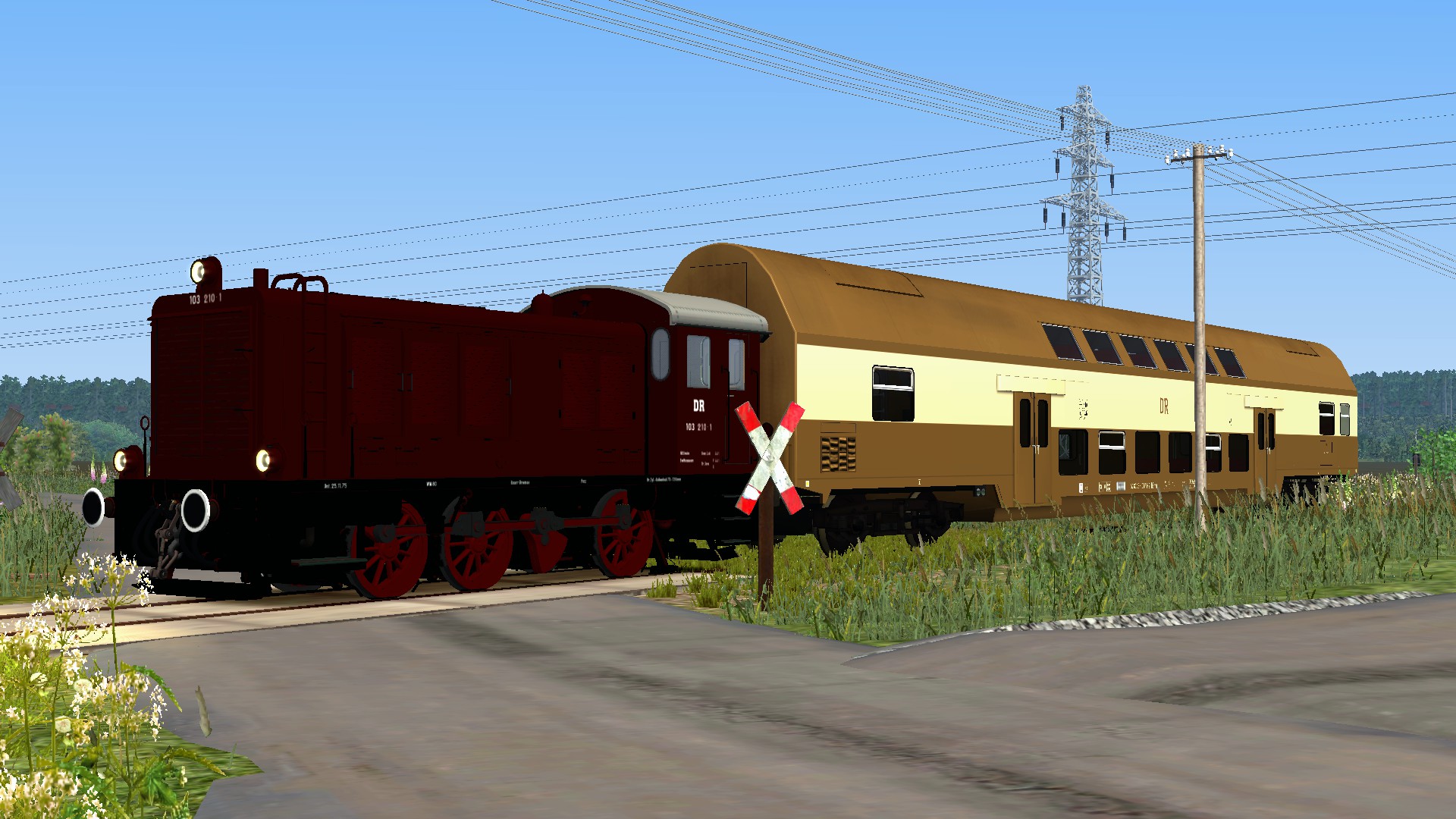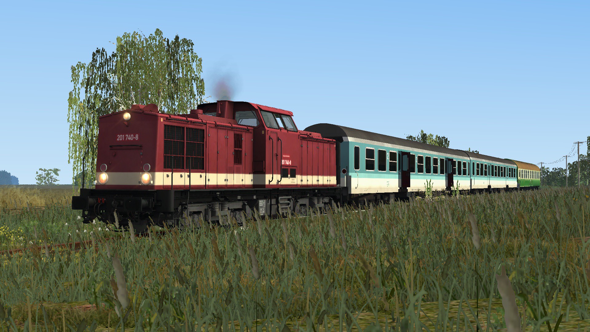 irgendwann in den 90er zwischen Velgast und Triebsees anbei hab ich hier ein Vorbild aus der Realität benutzt daher fahre ich auch mit 3 Wagen in Richtung Triebsees