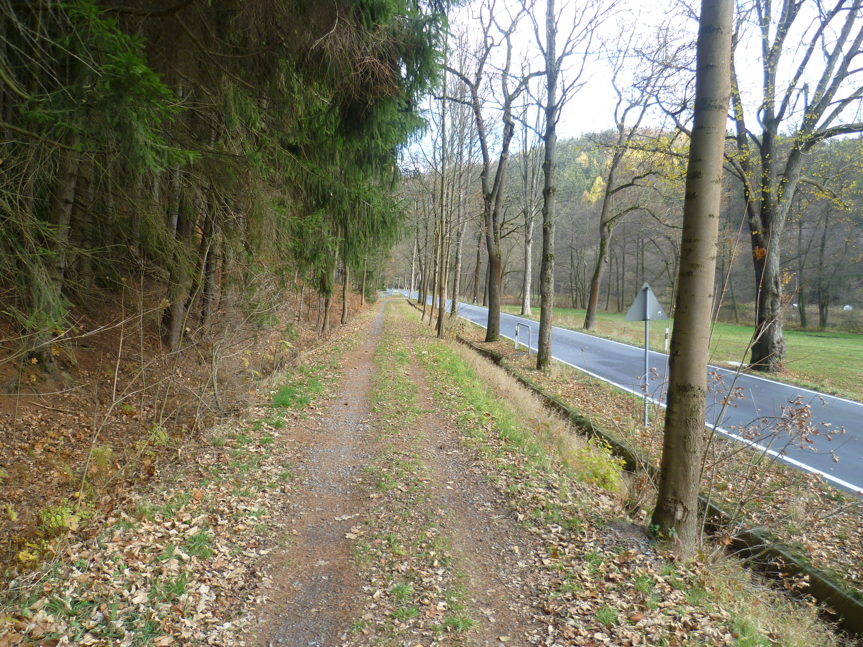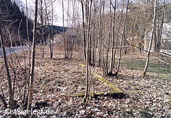 Ein Grund dafür liegt wohl an der direkt daran anschließenden Brücke am km 5,55 über die Weiße Leite und am anderen Ufer des kleinen Bachs ist auch schon der Ortsrand von Gelenau erreicht und die Auffahrt zum Bahnhof beginnt. Nun allerdings ein wenig unwegsamer, als bisher und als damals sowieso