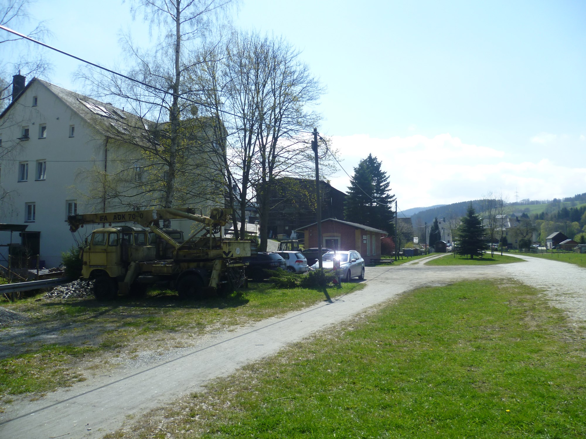 Von 1984 bis 1986 war hier Endstation der Strecke und nur durch massiven Druck von oben und gegen den Willen der Bevölkerung und der stetig gewachsenen Fangemeinde, die aus aller Welt ins Preßnitztal kamen, wurde die Strecke schließlich doch eingestellt, obwohl sie noch bis weit nach der Wende rentabel gewesen wär und Kühlschränke befördert hätte