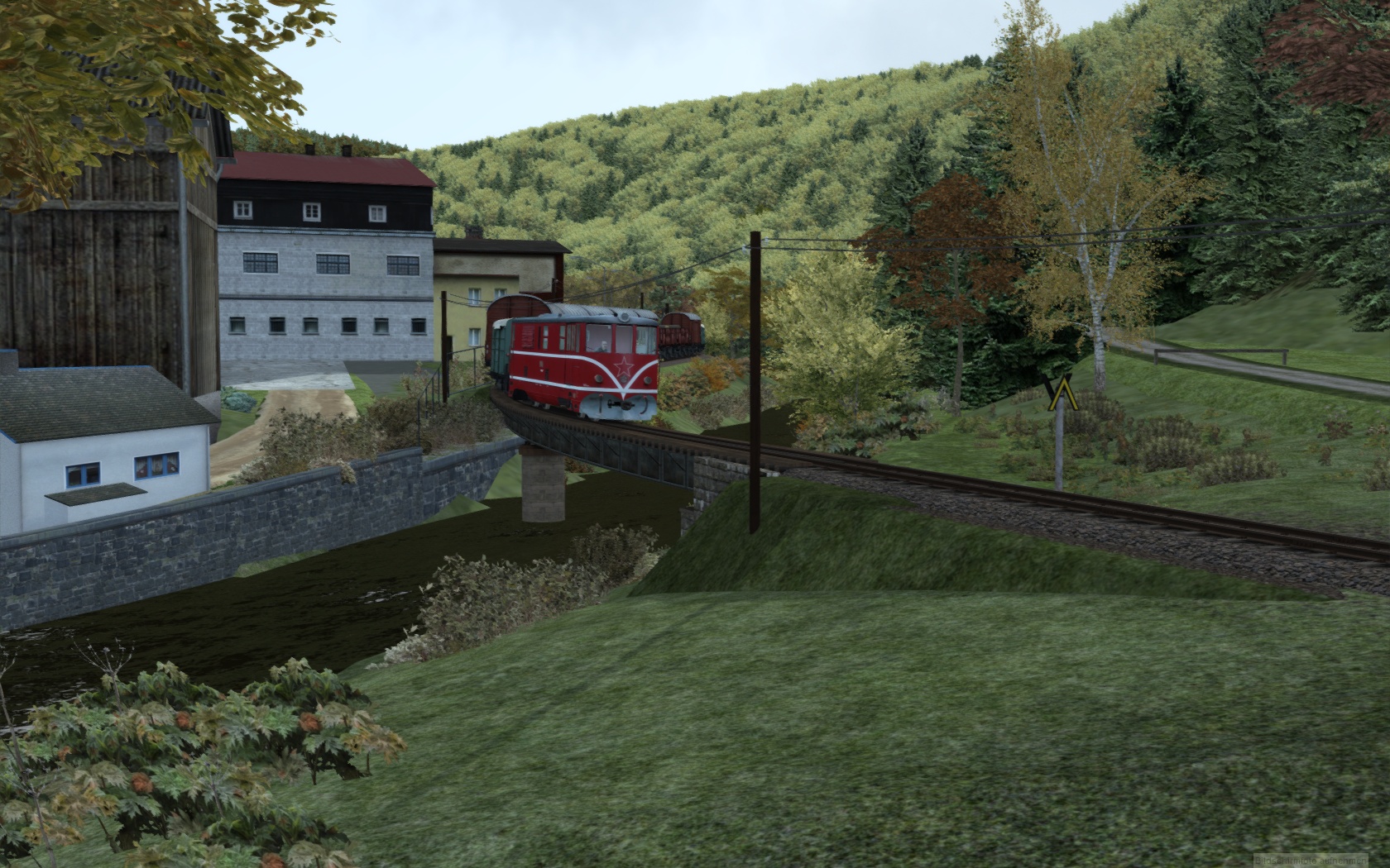 Schwer zu sagen, ob bei diesem eigenwilligen Verlauf hier der Werksgraben, die Bahn oder die Straße zuerst da war...oder warens doch die Bäume