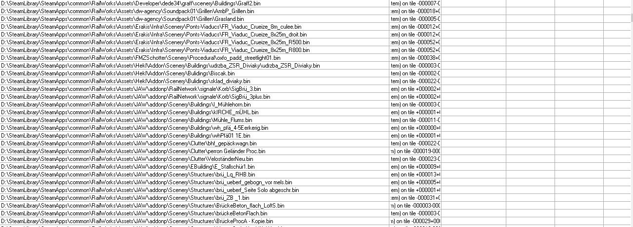 ja, das ist in der Tat ein großer Kritikpunkt. Man muss sich sehr viel mit RW Tools und Google quälen, um alle Assets zusammen zu bekommen. Ich denke da wurde in der Euphorie etwas zu viel freigeschaltet und unsauber dokumentiert. Ich habe @FMZSchotter darum gebeten, eine saubere Liste bereitzustellen, was er für Neuchâtel - Yverdon - Bussigny getan hat, aber leider noch nicht für Neuchâtel - Bern und Fribourg/Freiburg - Bern. Vielleicht kommt da noch was.