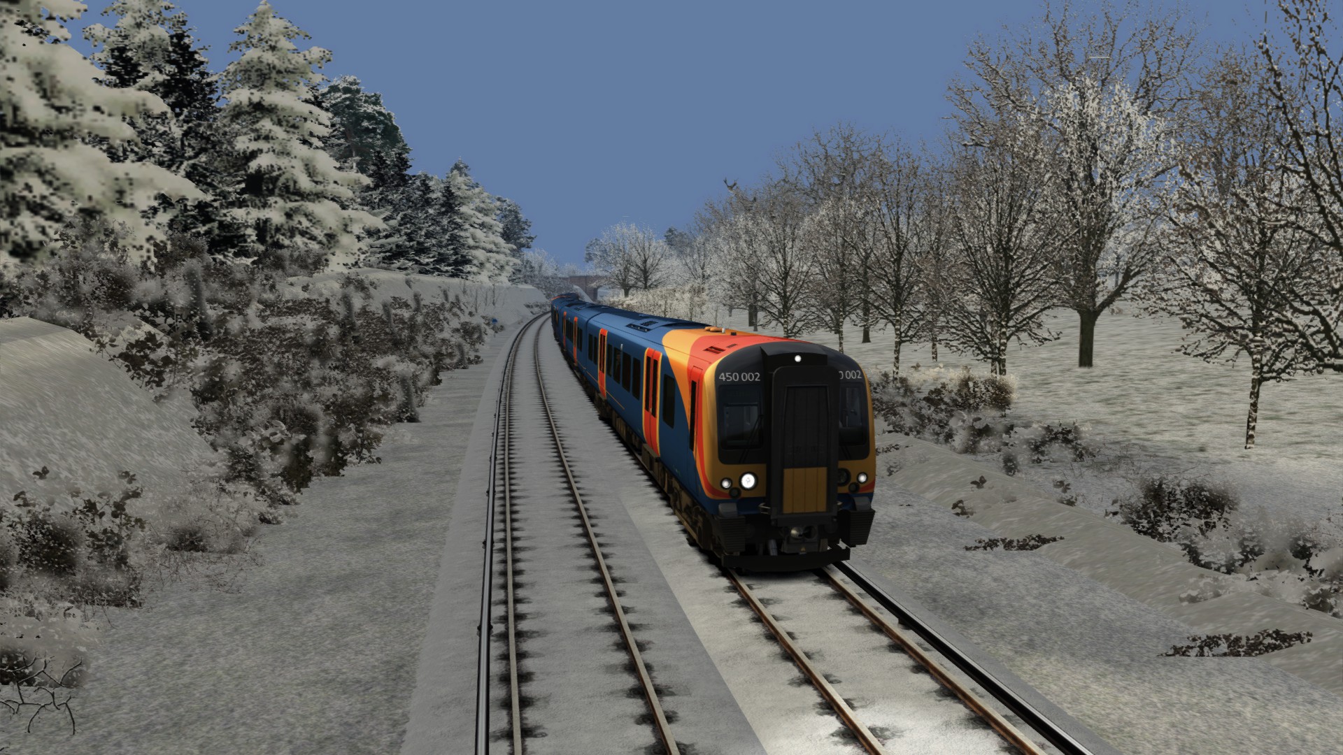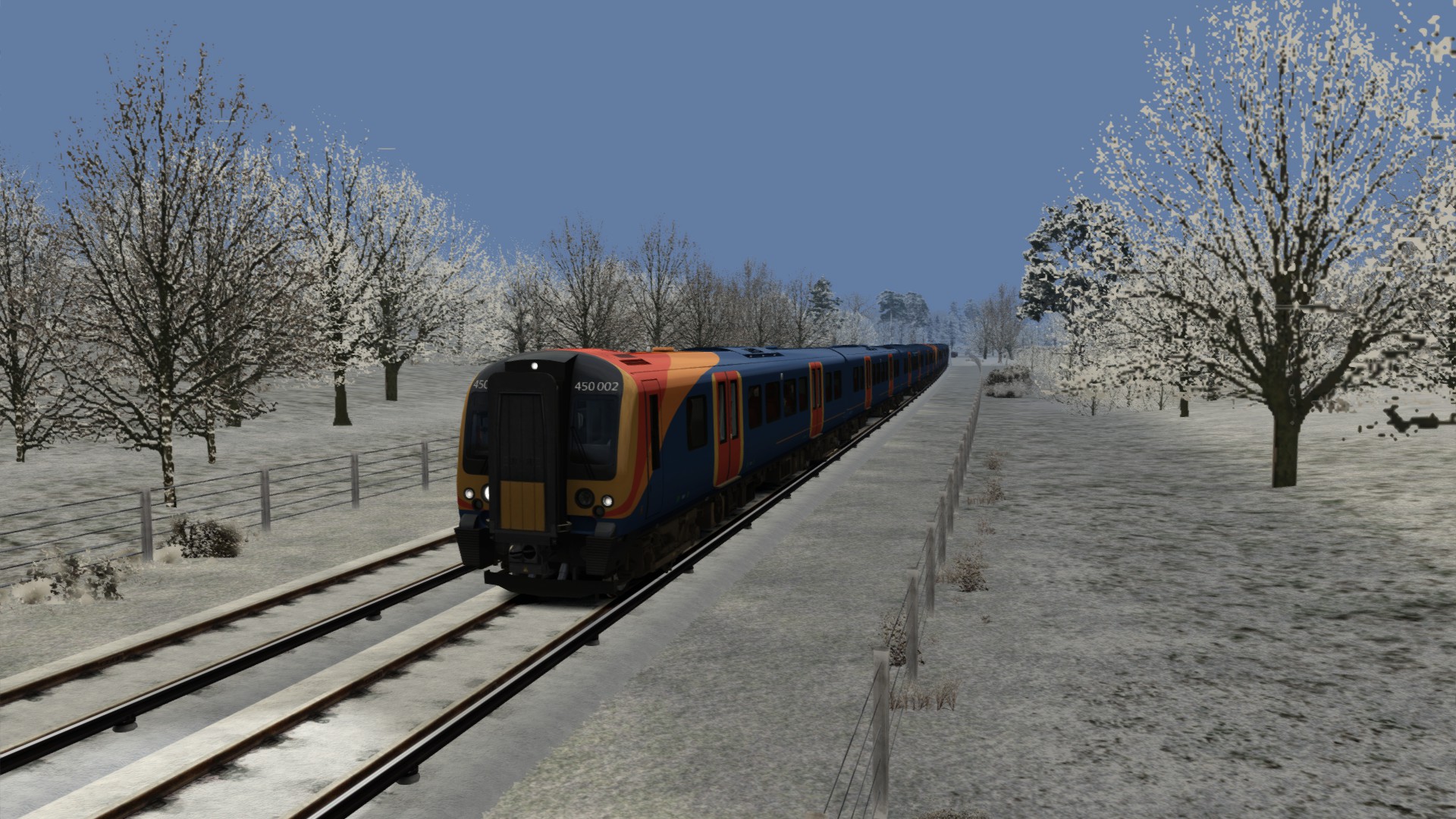 Class 450001 auf der PDL bei schönem Winterwetter.