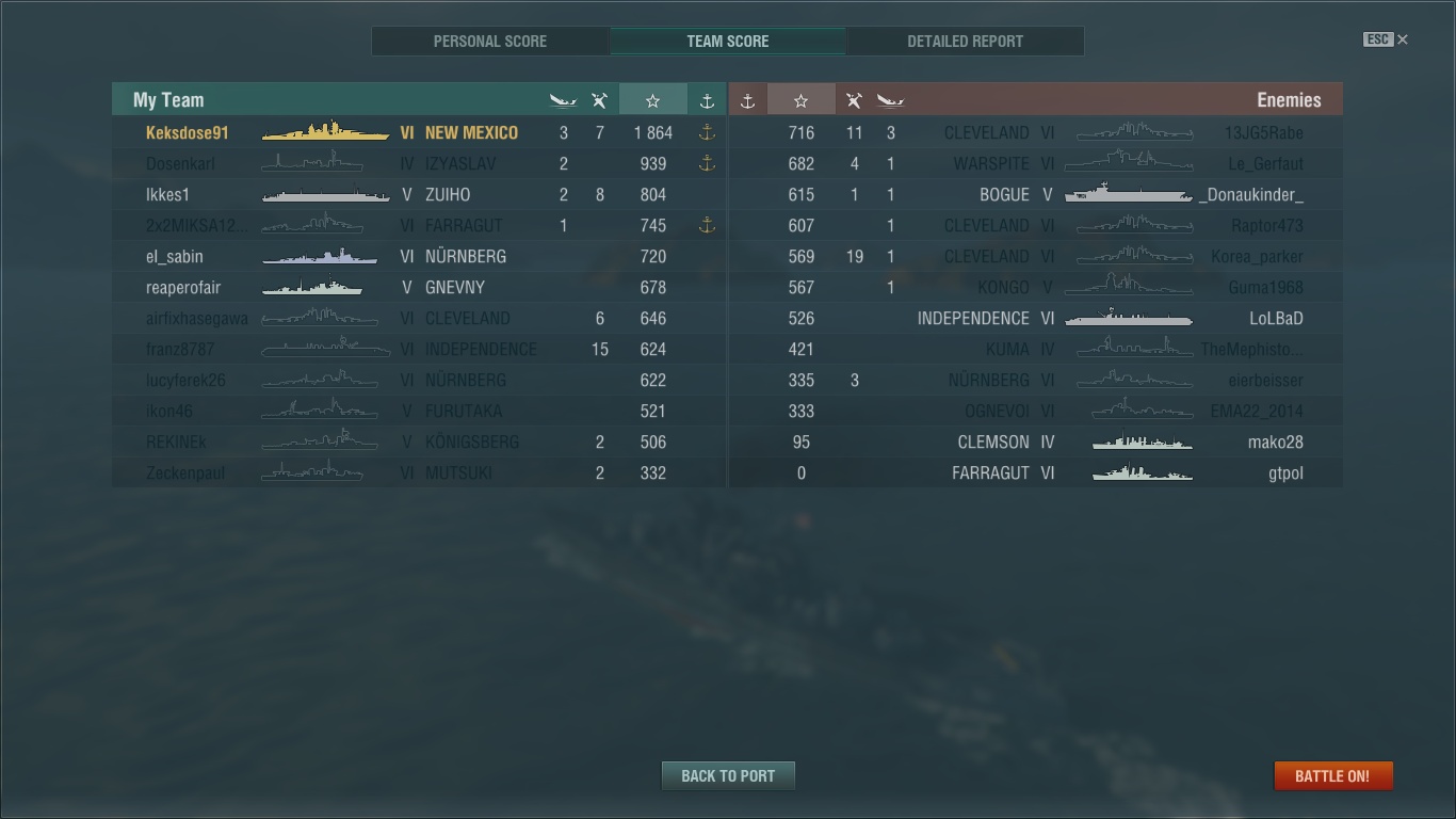 Die Zerstörer habe es mir zZ angetan und ich spiele diese fast nur noch, obwohl meine Lieblingsklasse immernoch die Schlachtschiffe darstellen. :D
