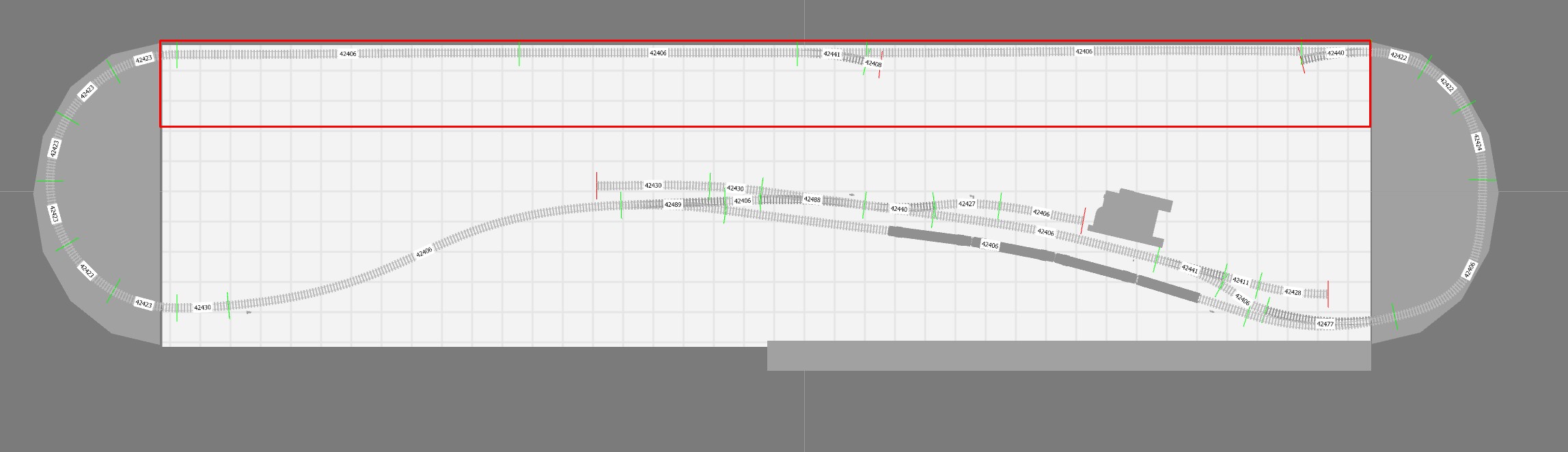 Die erste Box ist gebaut, leider noch nicht wirklich vorzeigbar. Über das lange Silvesterwochenende soll die zweite Box entstehen (Holz hol ich morgen ab, 8mm Pappel) und nach Möglichkeit auch die Trassenbretter sowie der erste Gleisbau. Ganz rudimentär und grob hingebastelt soll der Gleisplan ca. so aussehen (das rot eingerahmte wird der Schattenbahnhof mit 3 oder 4 Gleisen, verdeckt von einem darüberliegenden Hügel):