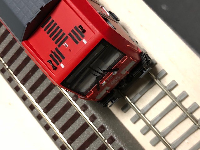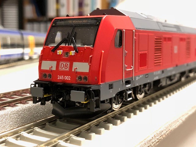 Als Rollmateral schwebt mir wie gesagt modernes Material vor, hier habe ich mir heute nachweihnachtlich beim Händler in der Gegend eine 245 von Brawa gekauft. Hab mich wie als kleiner Junge gefühlt, war bestimmt seit 20 Jahren in keinem Modellbahngeschäft mehr drin. Bin begeistert von den feinen Details, ganz fein geätzte Gitter z.B. - demnächst kommt noch ein Lokpilot rein. Dazu bin ich auf der Suche nach 2 Dostos plus Steuerwagen. Das Roco Geoline-Gleis kommt wieder weg, ist nur als Teststrecke aufgebaut. Meine Gleislieferung ist für morgen erwartet, habe bisher nur 2 Stück Flexgleis mit Betonschwellen, da kommt man noch nicht weit.