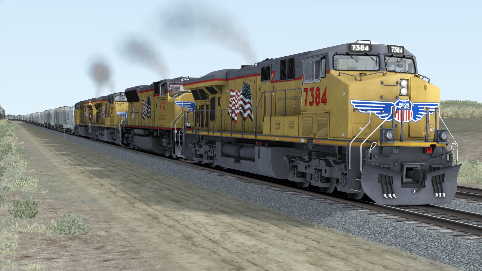 Nach ein paar Meilen gefällt mir die Strecke schon sehr gut. Eigentlich bin ich nicht unbedingt der Freund von amerikanischem Rollmaterial, aber ein bisschen fasziniert bin ich schon ![]()