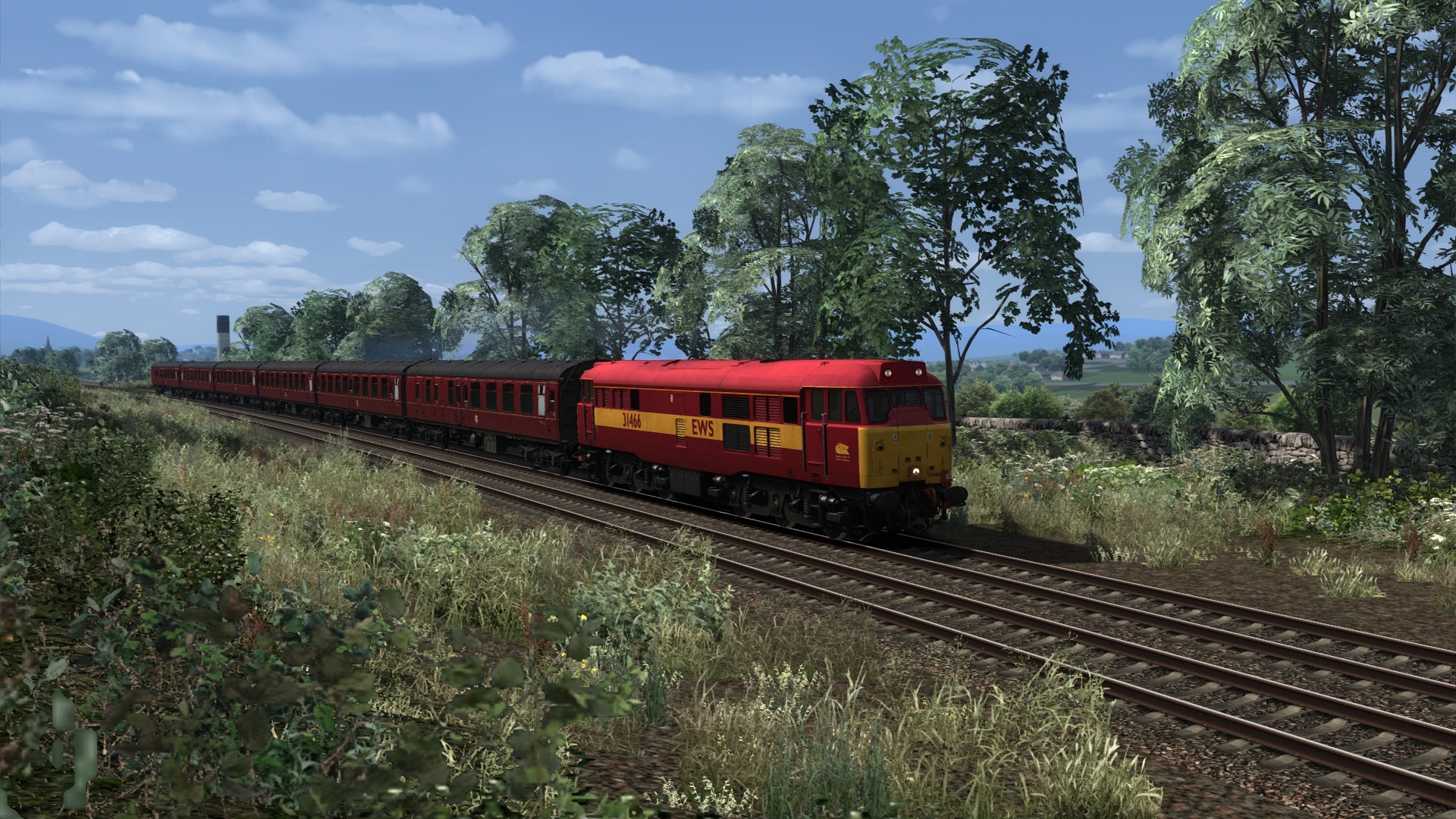 Qualvoll mit sechs Mk1 Wagen die 1:100 Steigung hoch. Die Lok ist wahrlich kein Kraftprotz.
