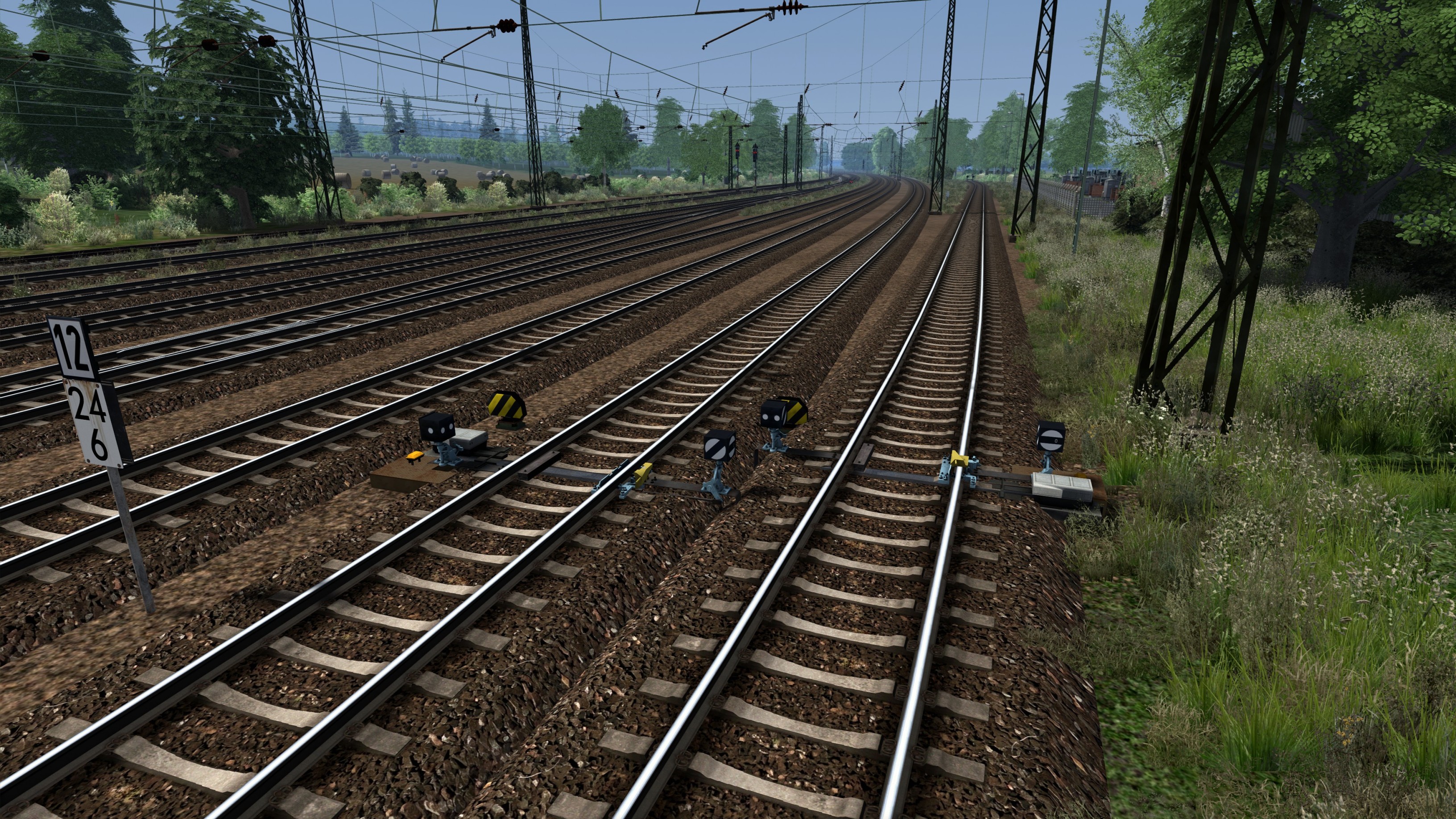 1. Hier wurde eine Kurvenüberhöhung aktiviert, obwohl keine verbaut ist. Dadurch kommt es zu diesen Gleistrennungen. Da haut es einem fast die Lok aus den Gleisen. Ist bei km 5,0.