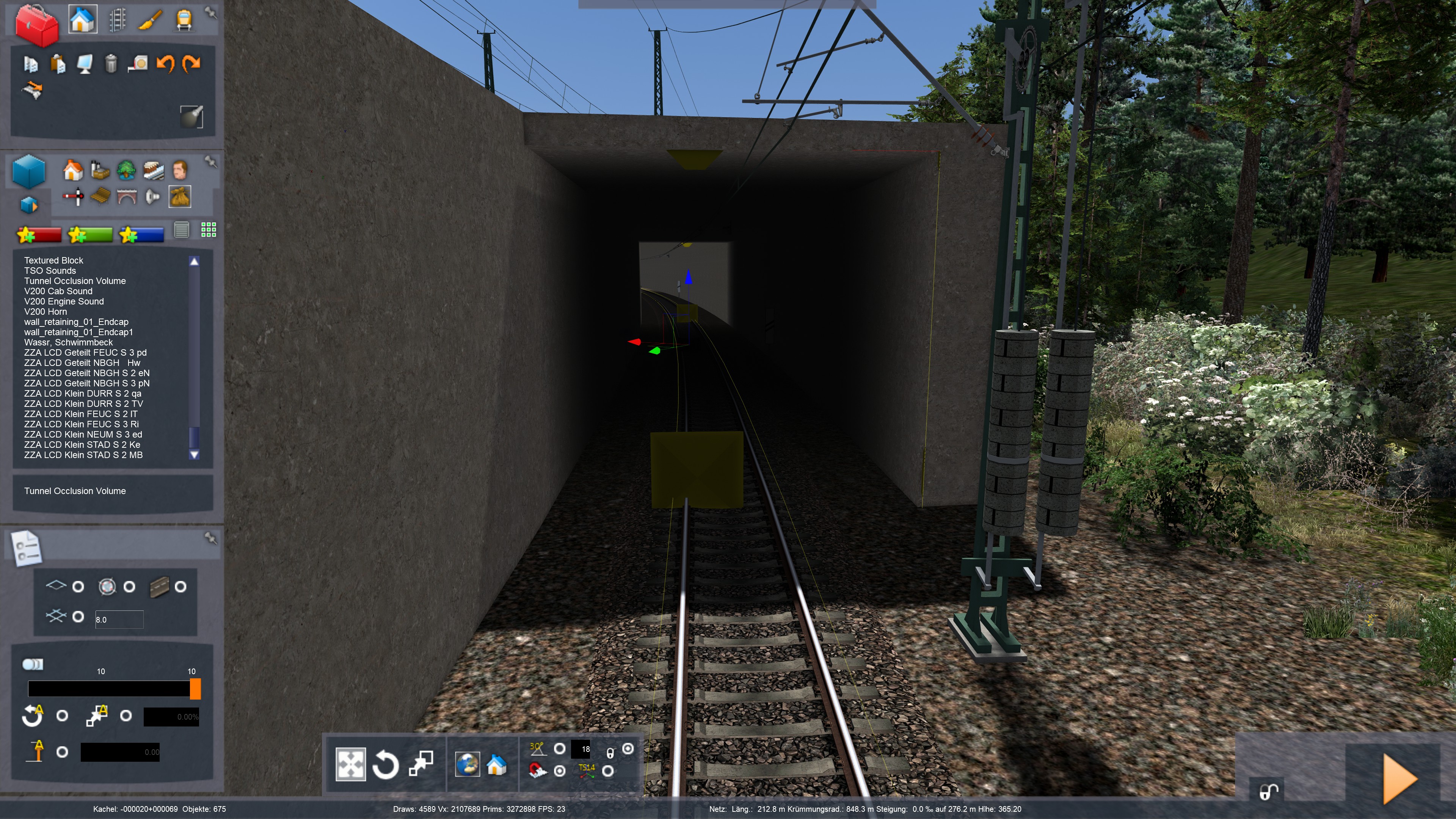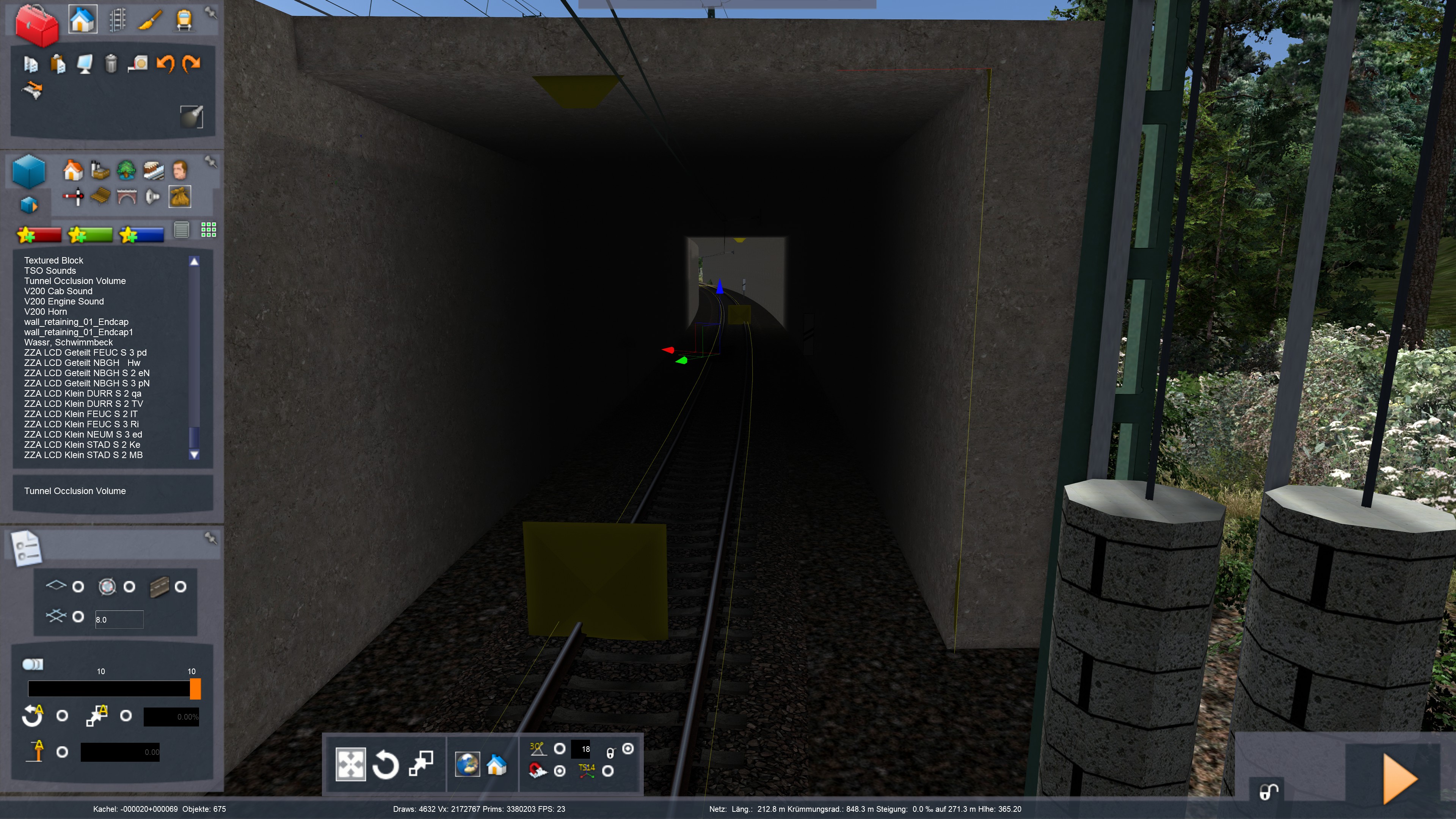 In diesem Tunnel könnte man eine Tunnel Occulusion verbauen, damit es darin auch dunkel ist. So wie es jetzt ist, ist es einfach zu hell da drin. Auch da hab ich mal was eingebaut. Man sieht deutlich, der vordere mit Occulusion, der hintere Teil ohne. Die Tunnel Occulusion Volume findet man unter "Verschiedenes"