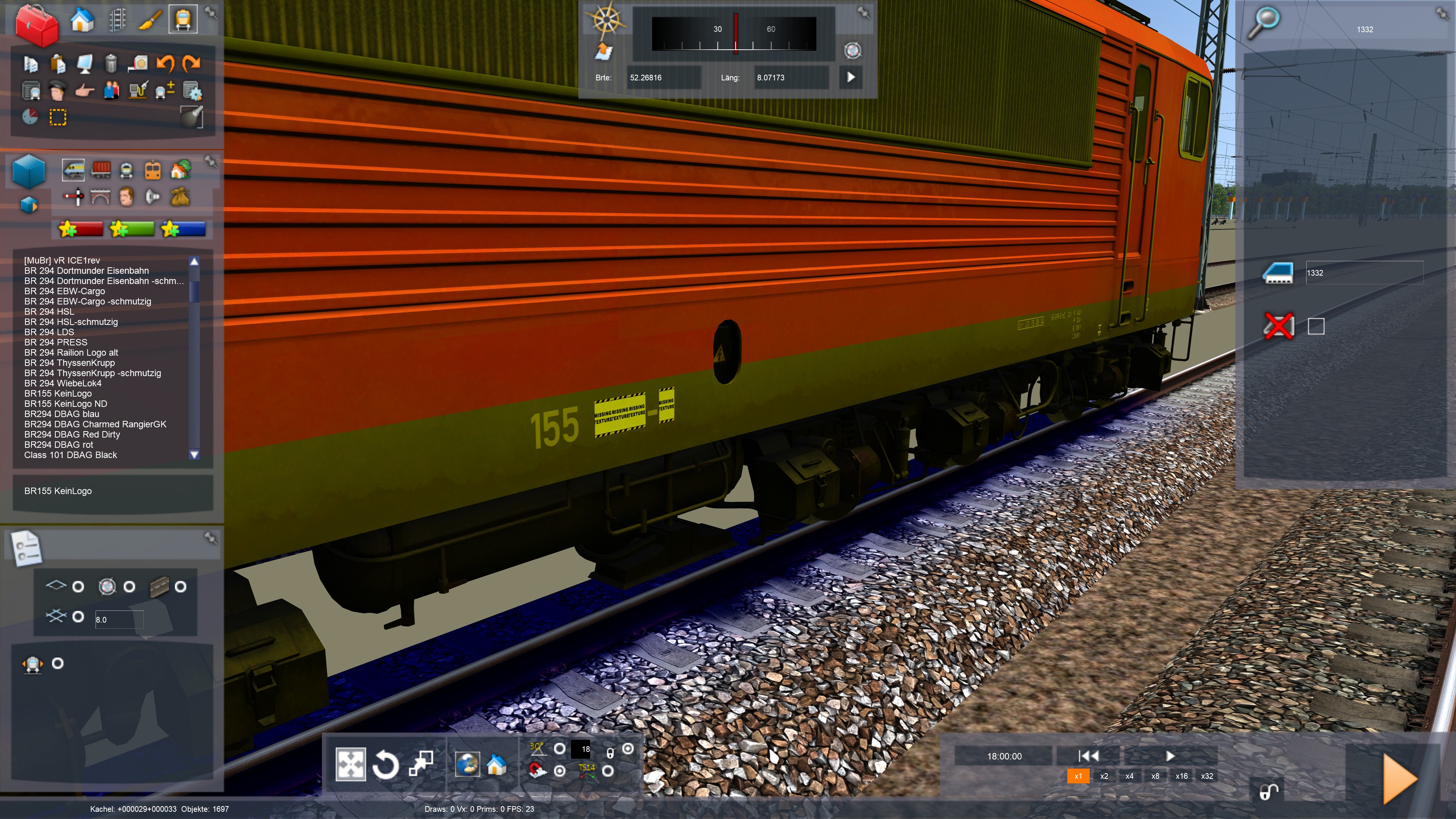 @Italien83 leider habe ich ein kleines Problem bei deinem "NoLogo" Repaint. Leider wird mir die Loknummer als Missing angezeigt. Installiert ist alles nach Anweisung. Könntest du da bitte evtl mal nachschauen? Gruß Amisia