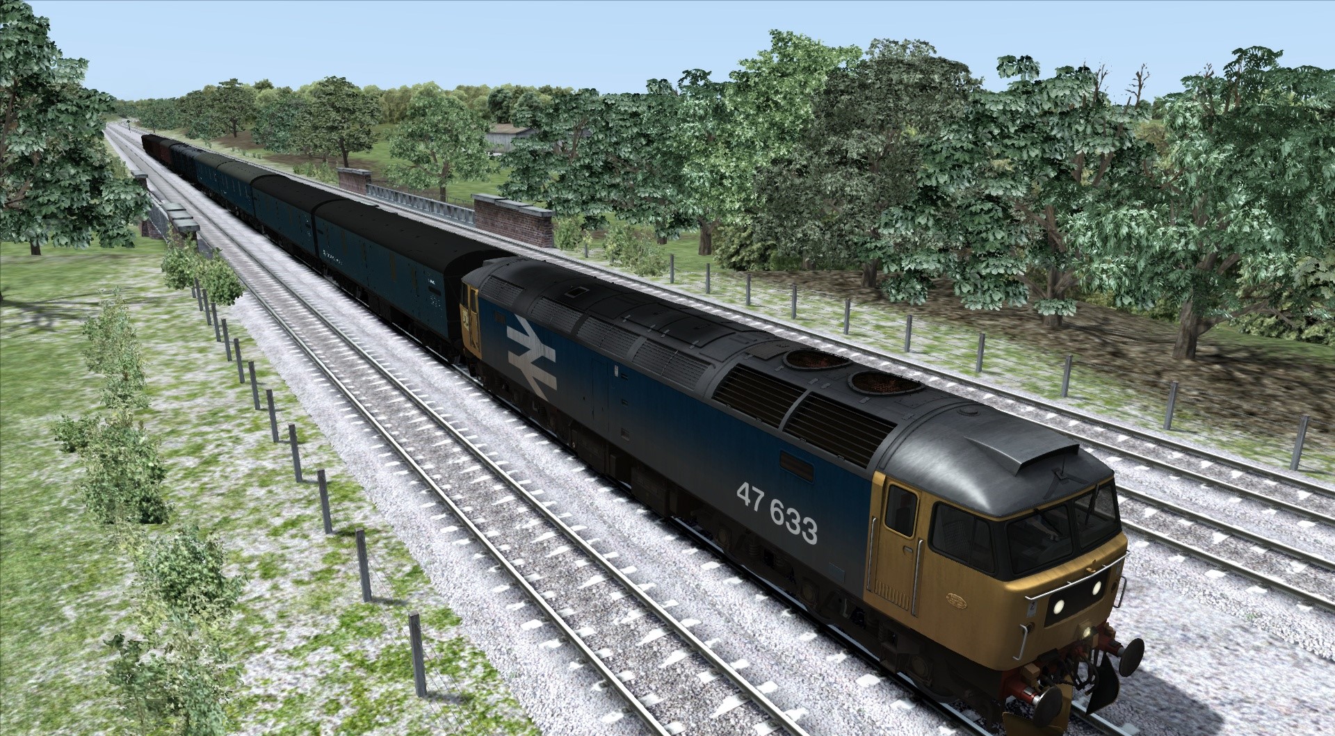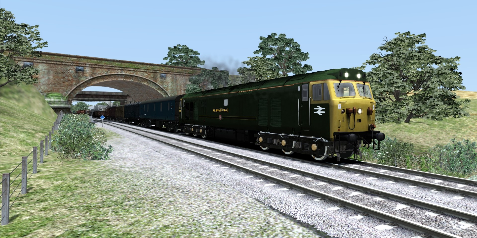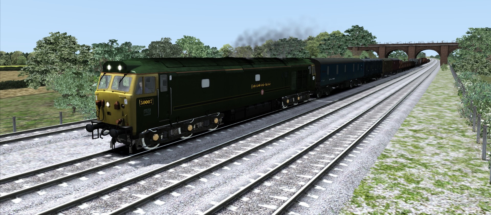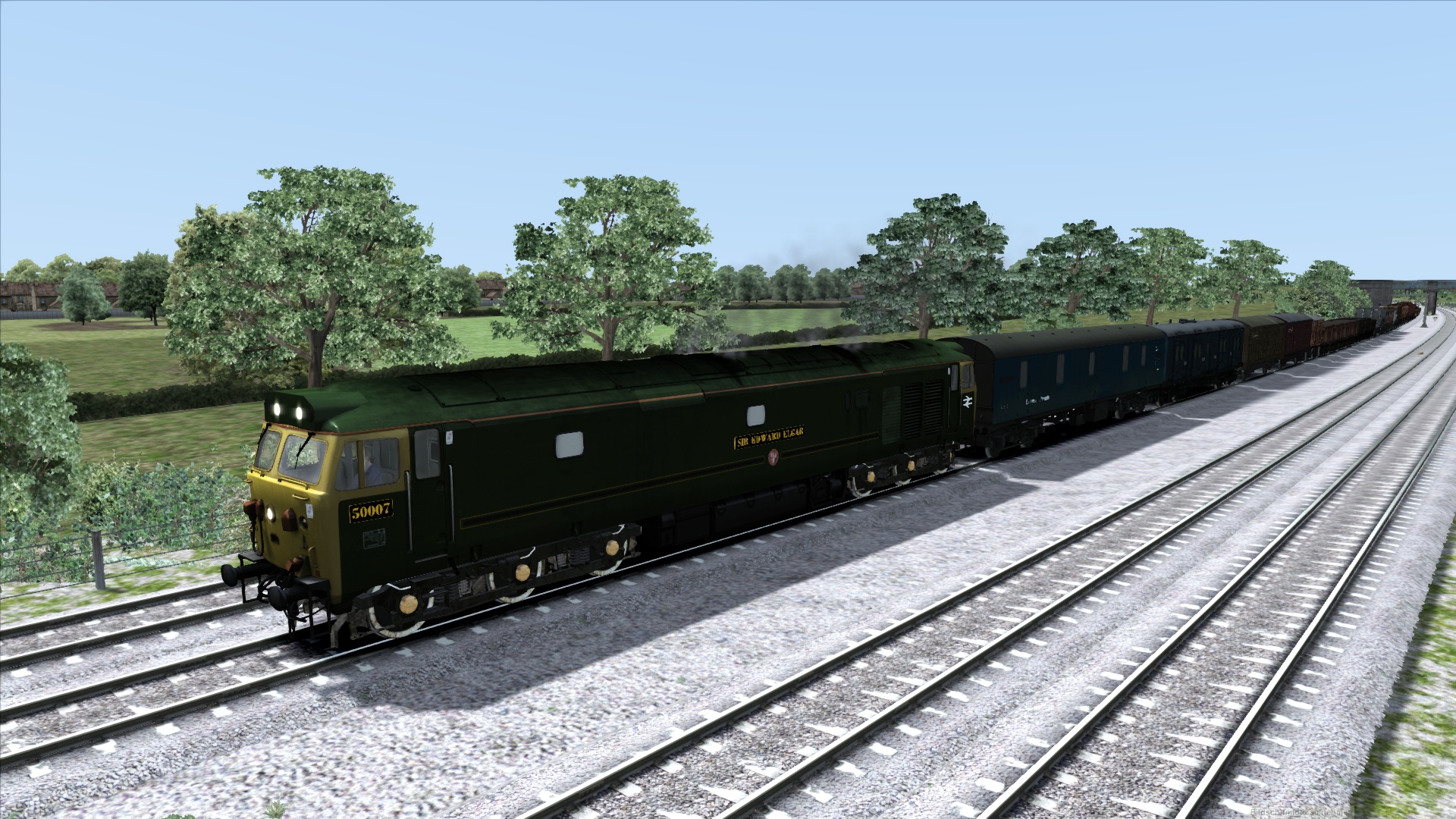 Hier fährt die Class 50 mit einem Güterzug mit 29 Wagen. Die Class 47 hat einen Postzug am Hacken ![]()