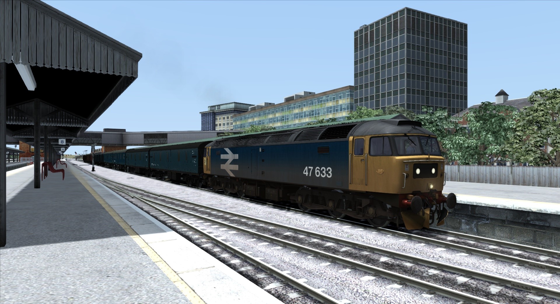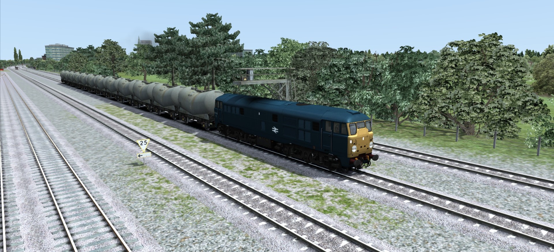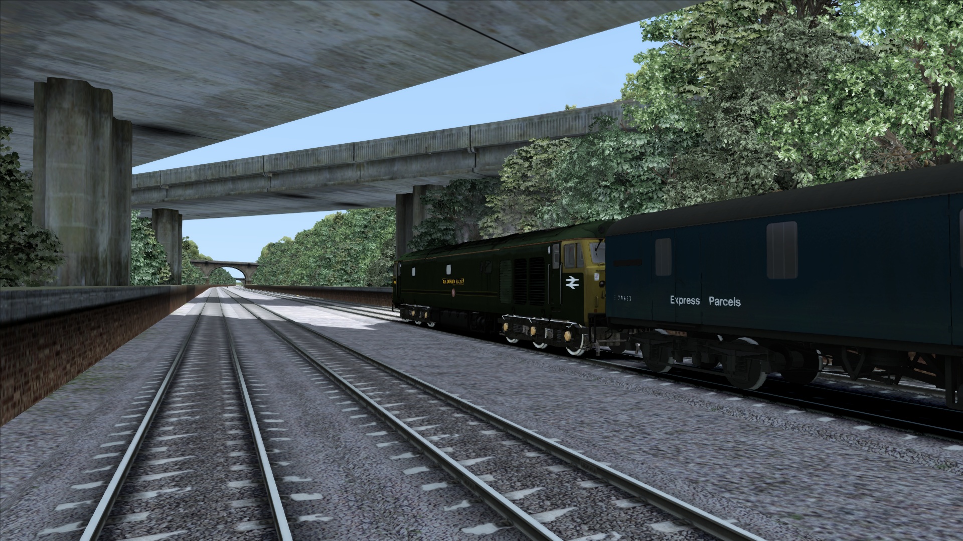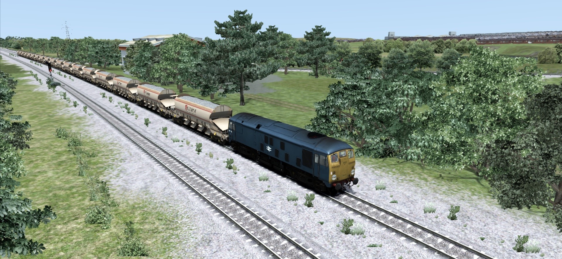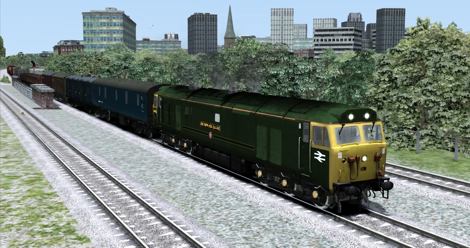 Hier fährt die Class 50 mit einem Güterzug mit 29 Wagen. Die Class 47 hat einen Postzug am Hacken ![]()