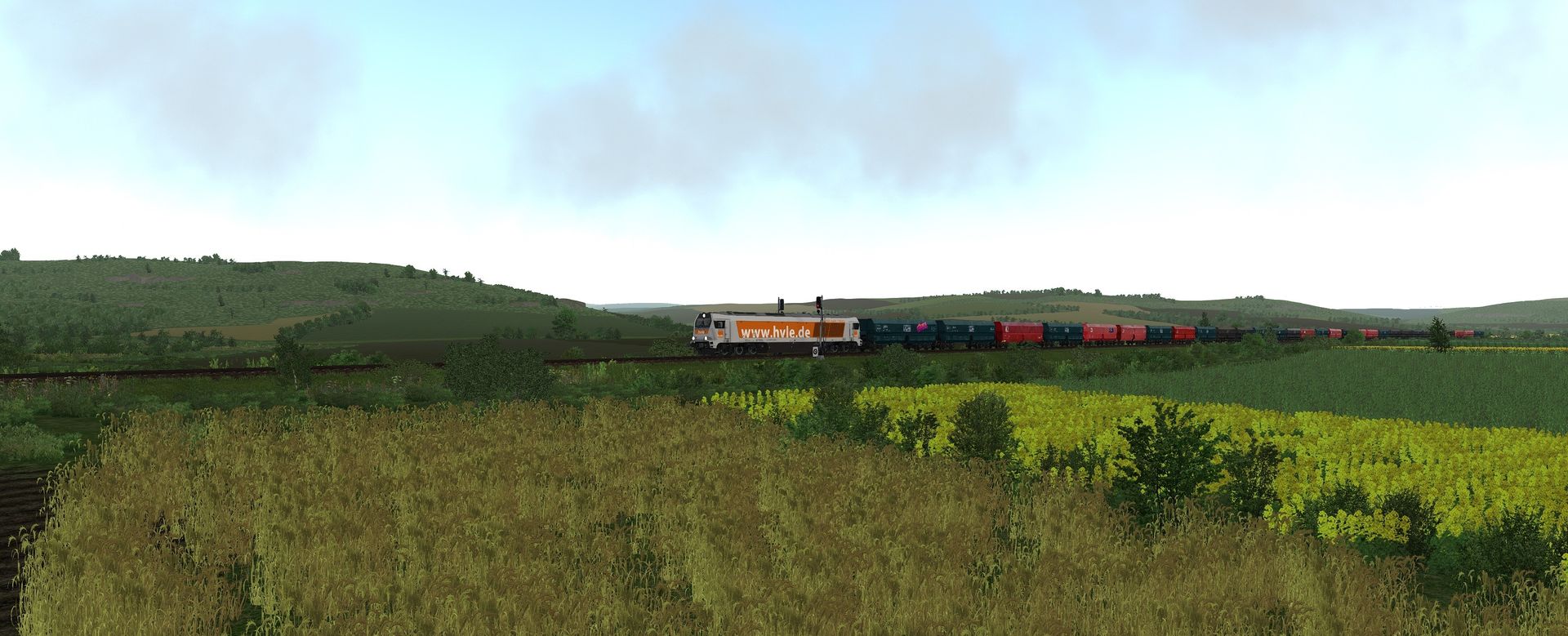 Die Wagen haben das vR Feature RandomSkin installiert automatische Zugschlusstafeln und dynamische Nummern.