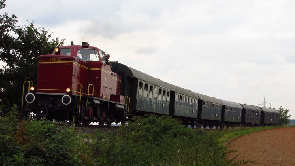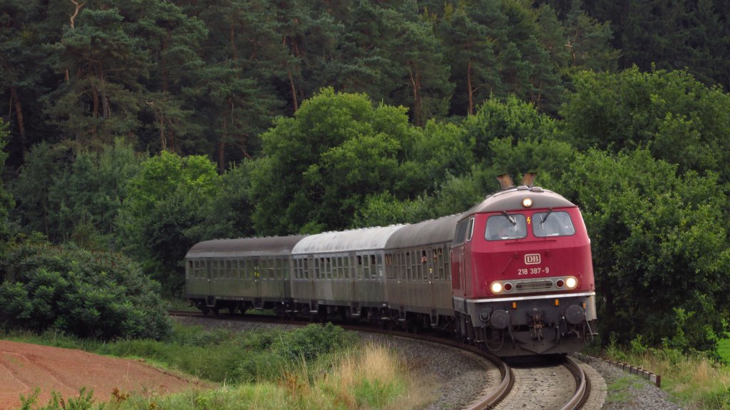 Null Verkehrsrotes, keine Triebzüge abgesehen von Schienenbussen! Sonst alles Lokbespannt mit 218, 212 und auch von einer Dampflok(BR 78) mit "Holzklasse-Wagen"! ![]()