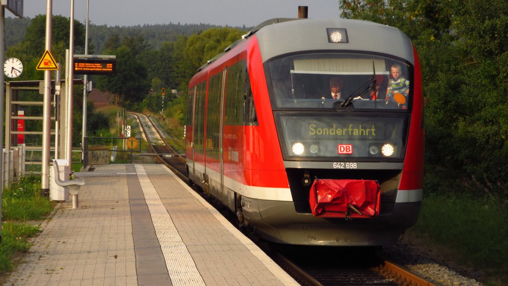 Zum Desiro, 646 und dem Bus: Busse fuhren auch, aber alte DB-Busse(Mal abgesehen vom O405N(?)) und der Desiro der WFB kam ungeplant vorbei, stets ohne Halte und der 646 fuhr erst am Abend um 19 Uhr, als die Historischen wieder einrücken mussten.