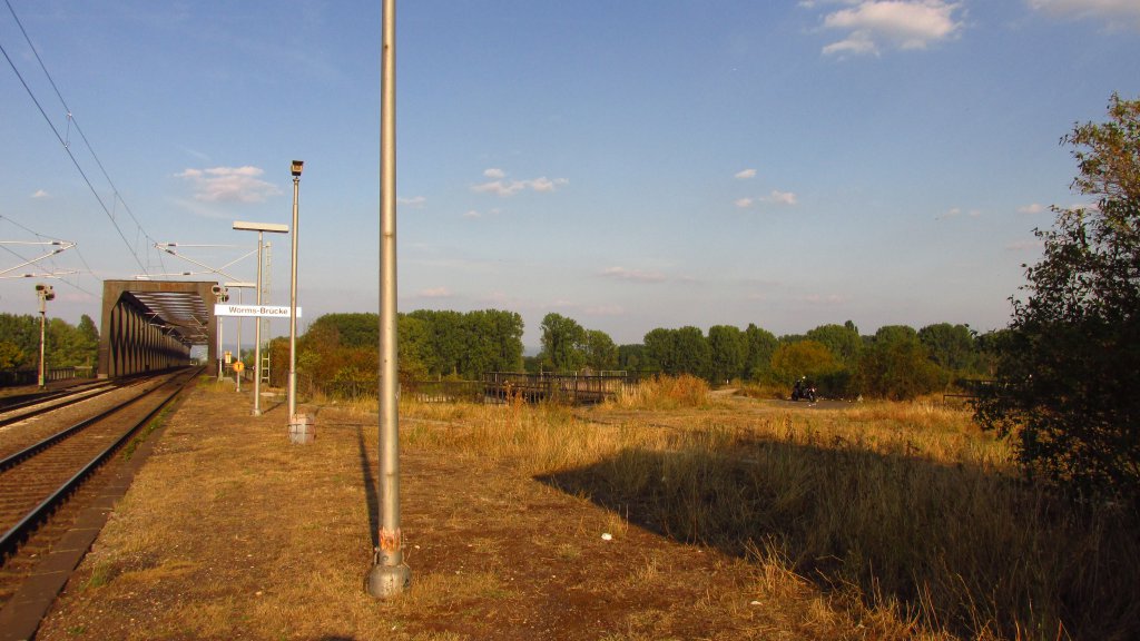 Hatte eigentlich nur vor, von der einen Seite über eine Brücke auf eine andere Seite zu gehen. Dann sah ich eine Brücke, bis ich merkte, dass da nur Züge drüber können... dann fiel mir aber ein, dass dort ja noch der alte Haltepunkt "Worms Brücke" ist, erst hatte ich vor, über den Zaun zu klettern, fand dann doch eine "legale" Möglichkeit zum Haltepunkt