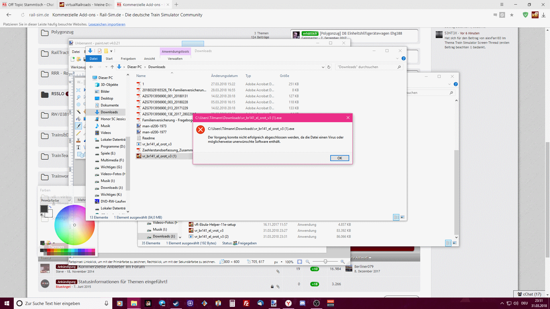 Mich hat es nur gewundert, das es bei der vRoten kein Problem gab und bei der oRoten dann aber ein Problem gab... Manchmal verstehe ich diese Schutzprogramme nicht