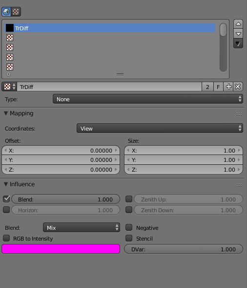 Eine falsche Schreibweise ist fatal es MUSS heißen TrDiff oder später bei Loftobjekten LoftTexDiff