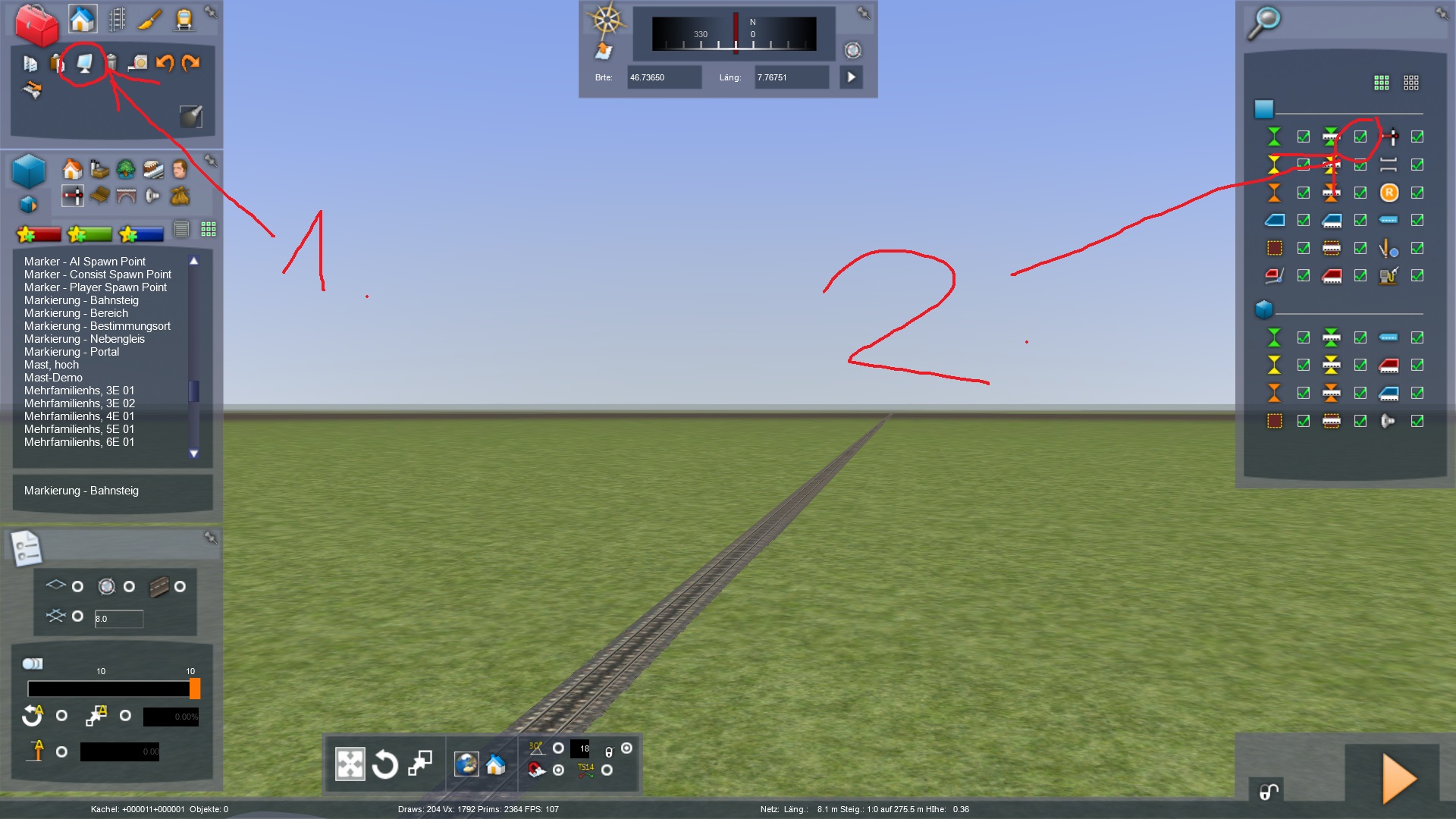 Dafür gehst du in ein bestimmtes Menü, (hab ich im Anhang eingekreist) und aktivierst dann die Bahnsteigmarkierungen.