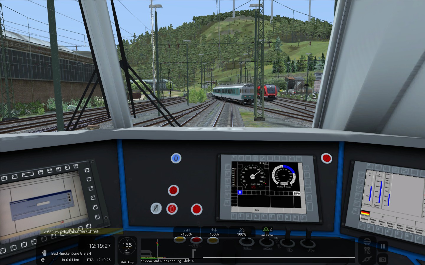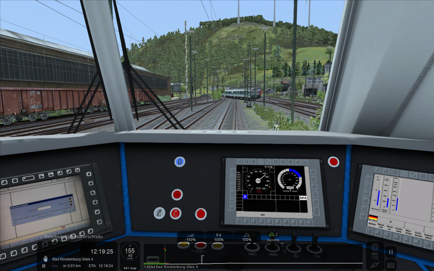 Also was mir jetzt schon an ihr wahnsinnig zusagt, ist dieses dunkle Amaturenbrett mit dem gedimmten Licht. Man erkennt auch an den Bremsanzeigen wunderbar, dass es Mal eine französische Lok war.