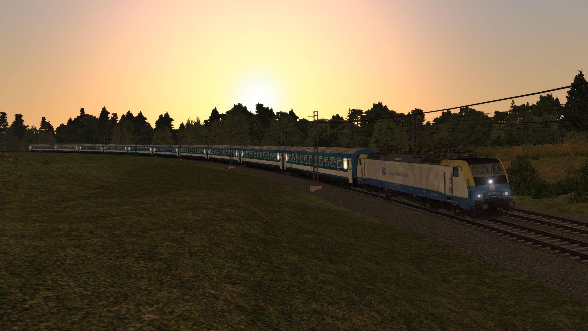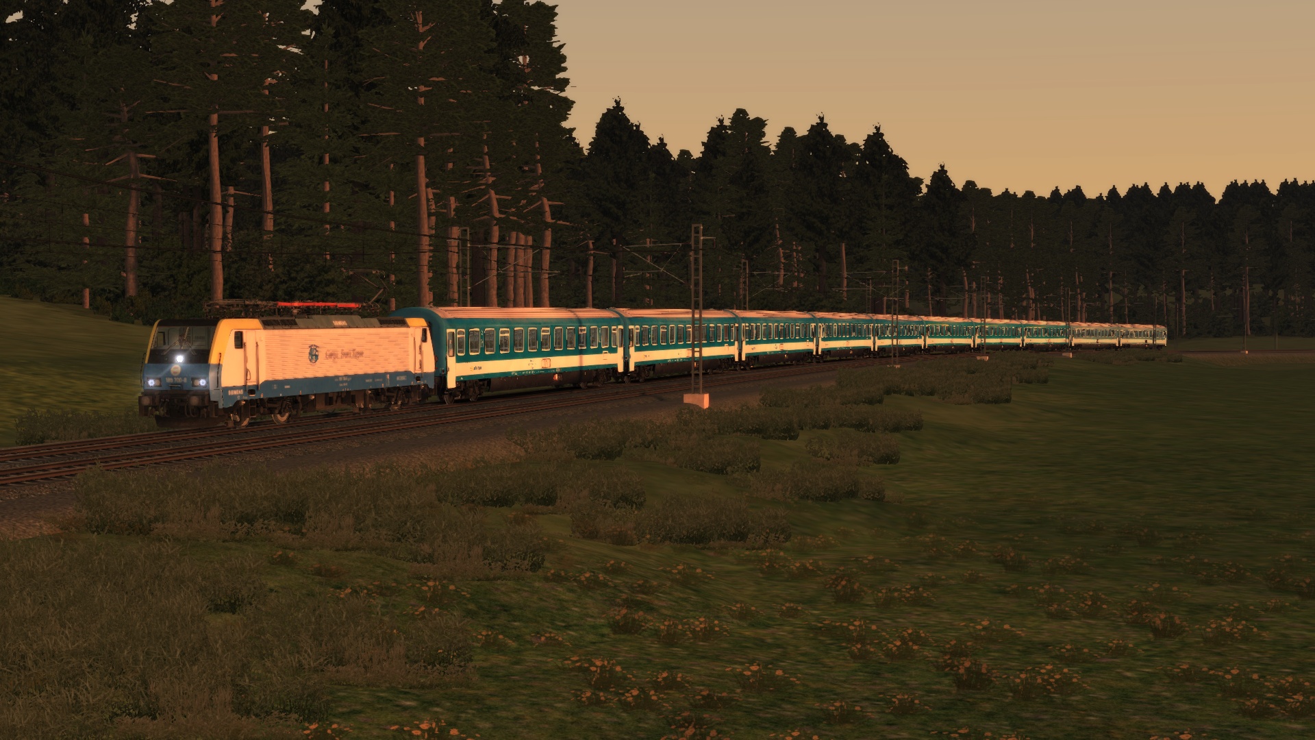 Cargo Trans Vagon 189 700 with MAV-START chartertrain to Praha hl.n, in a beautiful sunset.