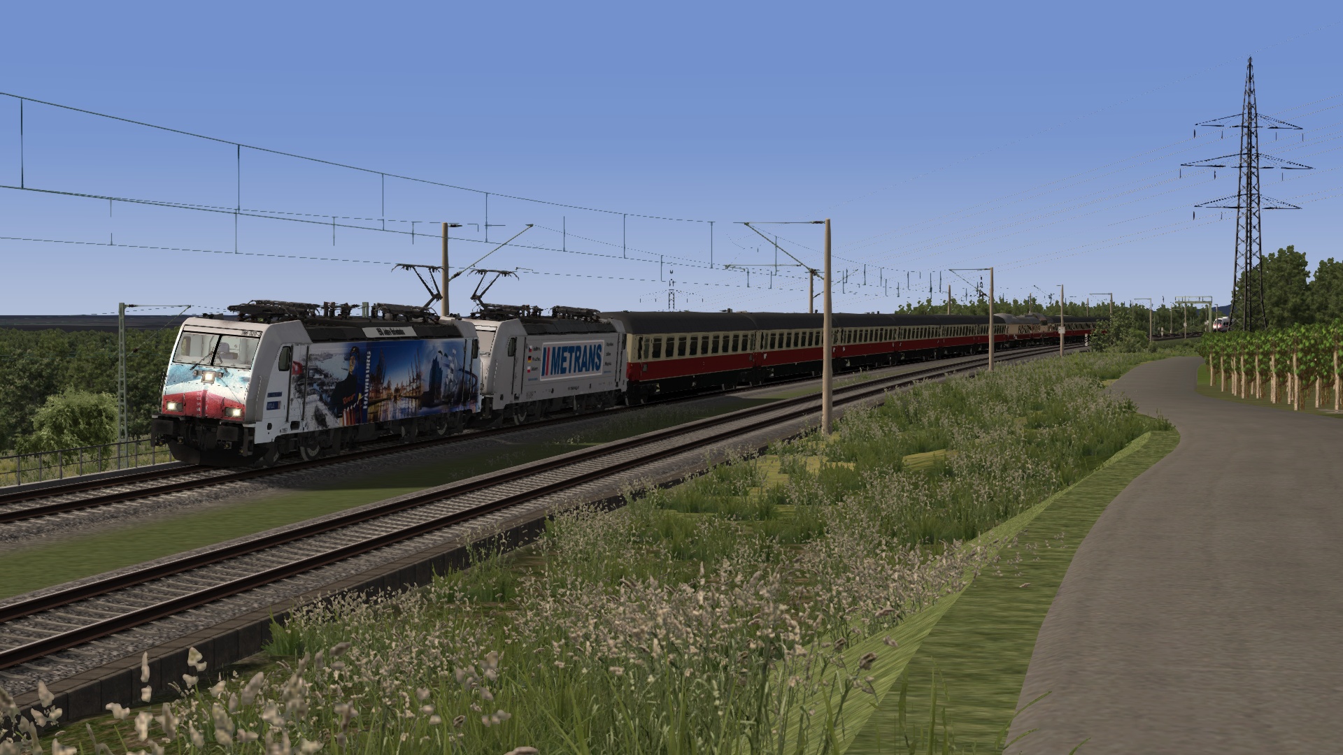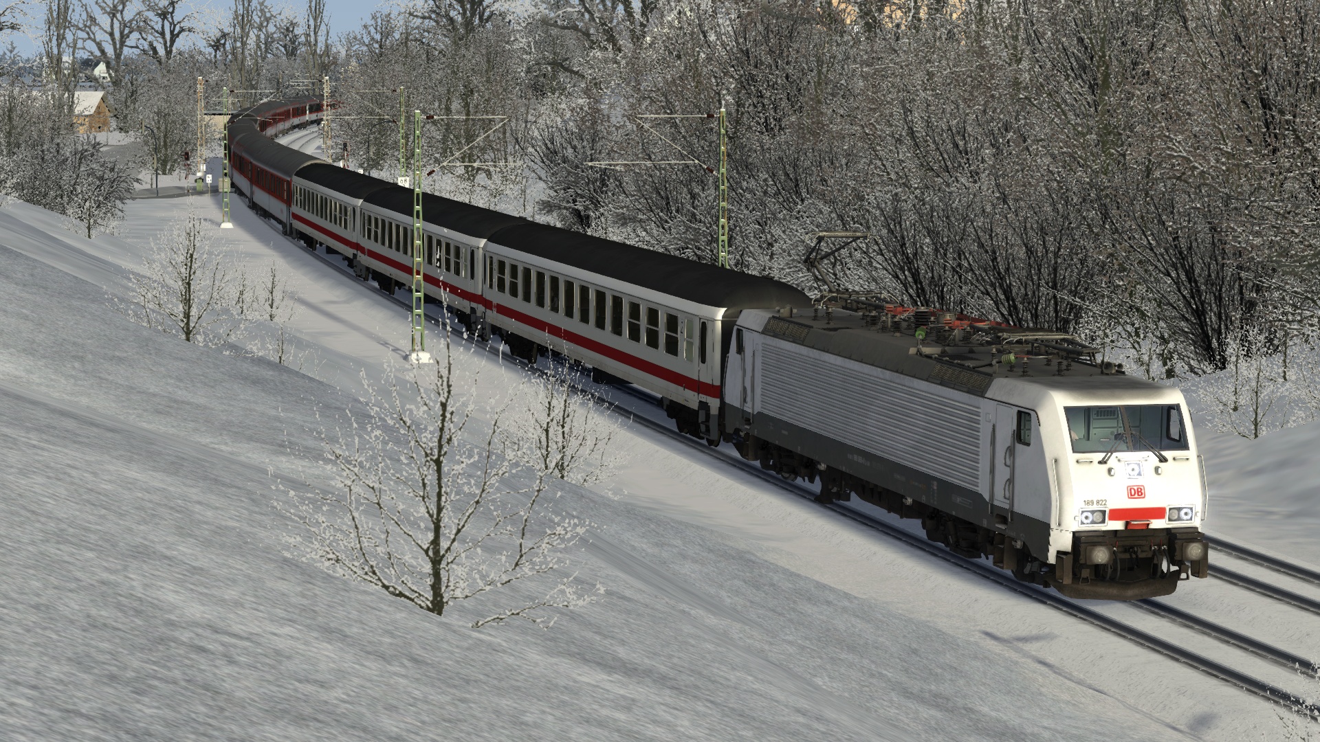 DB Cargo 189 822 with CityNightLine passing Elten, almost reaching Emmerich.