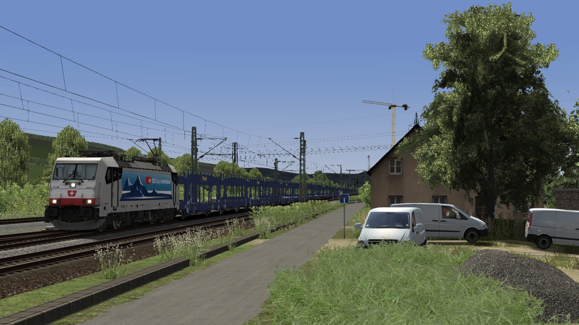 SBBCI / Ralpin 186 908 with empty Touax car train.