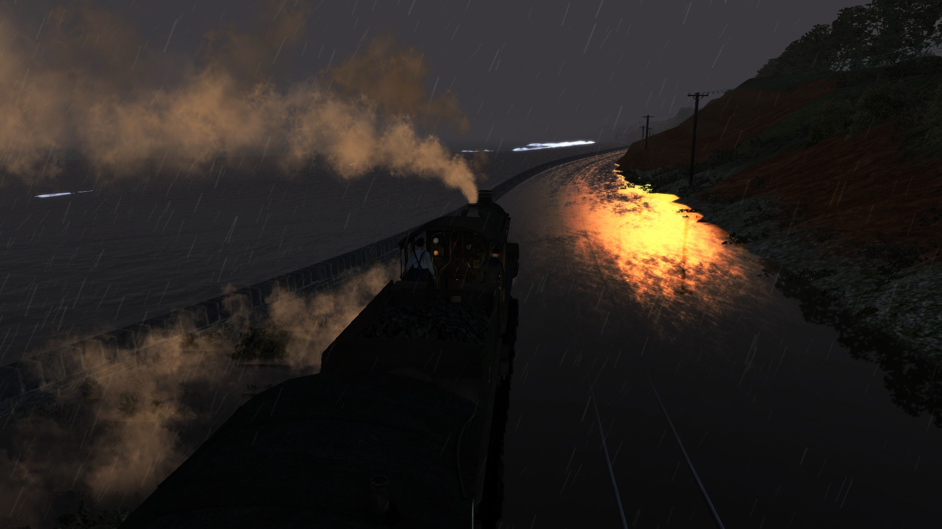 Auf der Riviera Line wütete am Tag ein schwerer Sturm. Das Gleis an der Küste war zwar überflutet aber der Bahnverkehr wurde dennoch aufrecht erhalten, um die Bevölkerung zu versorgen. Die GWR Hall Class bekam auf jeden Fall nasse "Füße"
