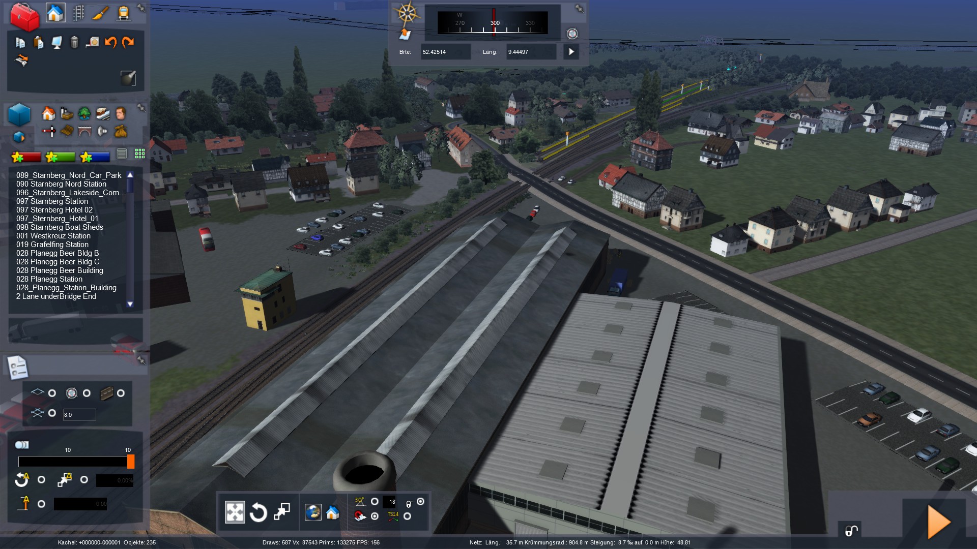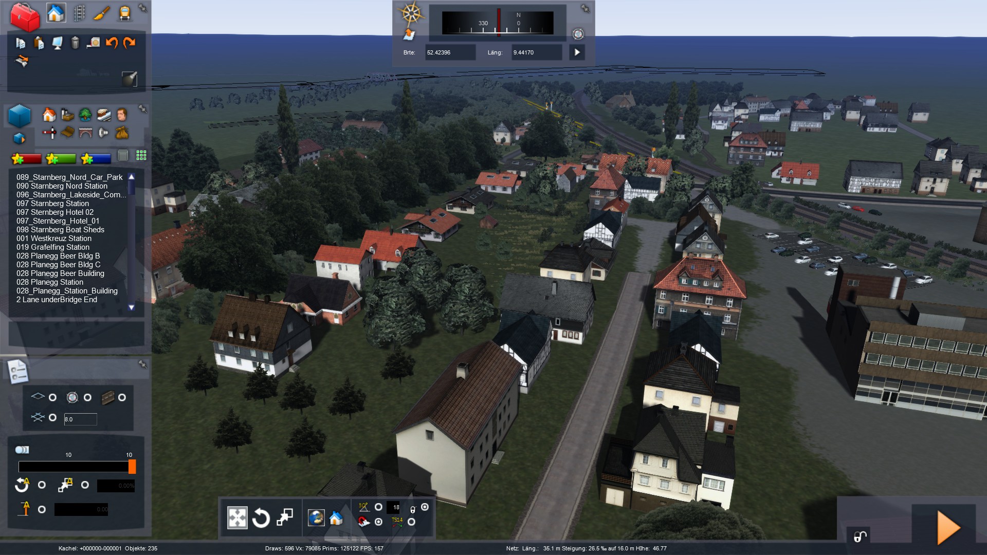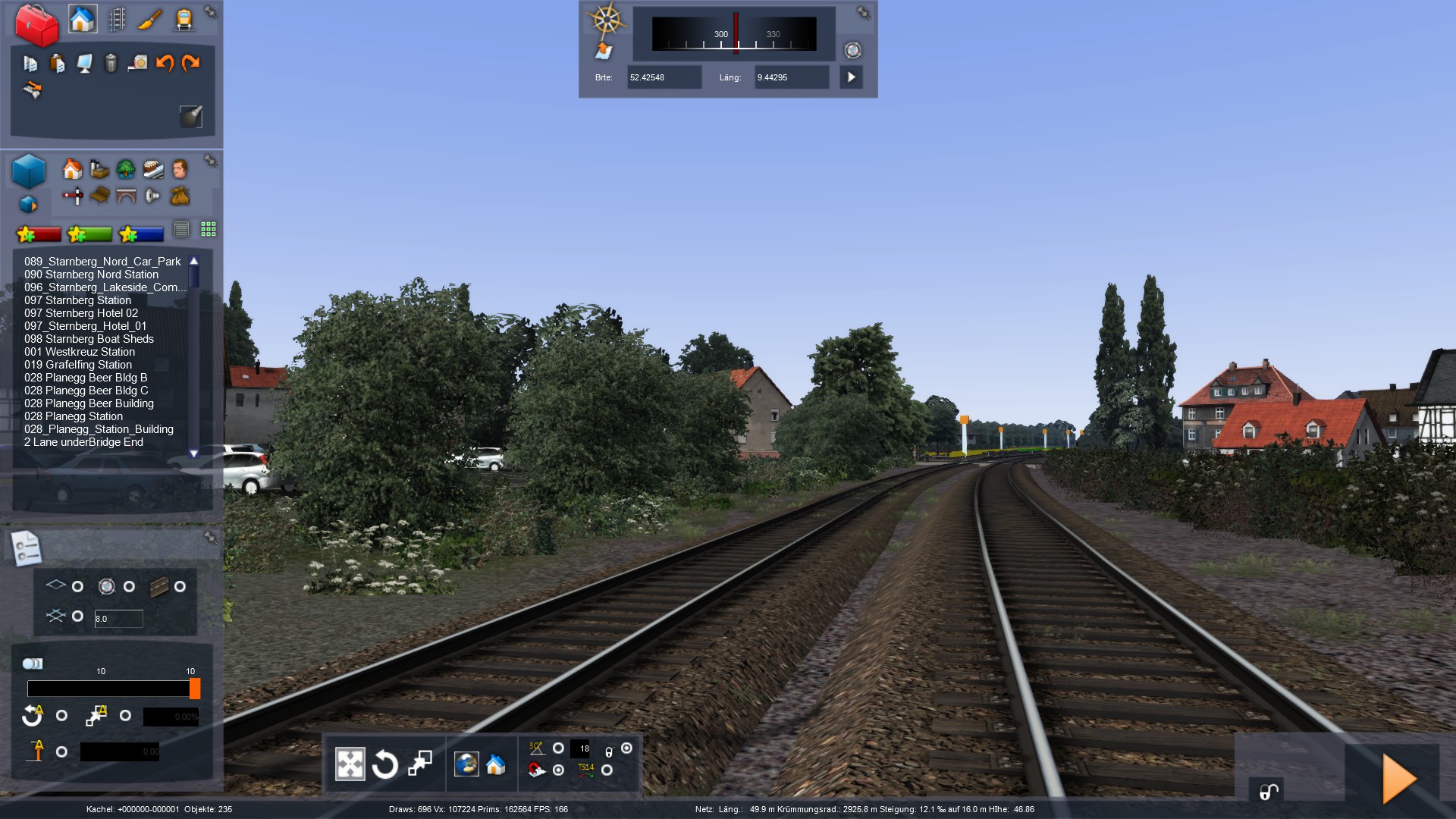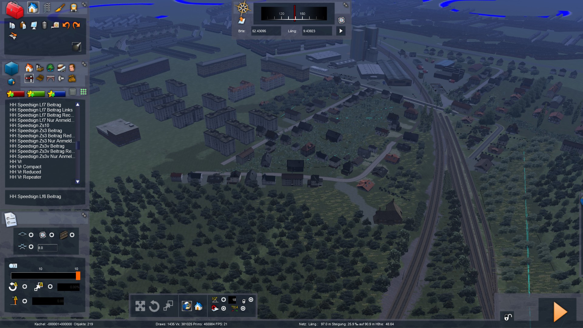 So. mal wieder ein Stück weitergekommen. Ich baue aktuell die Stadt Wunstorf, die um die ersten Kilometer der Strecke herum liegt. Relativ aufwendige Sache mit den ganzen Häusern und Gärten... Wenn ich mit dem Stadtgebiet durch bin, kommt erstmal ein großes Stück Land und Felder. Erst in Bokeloh werden wieder Häuser gebaut