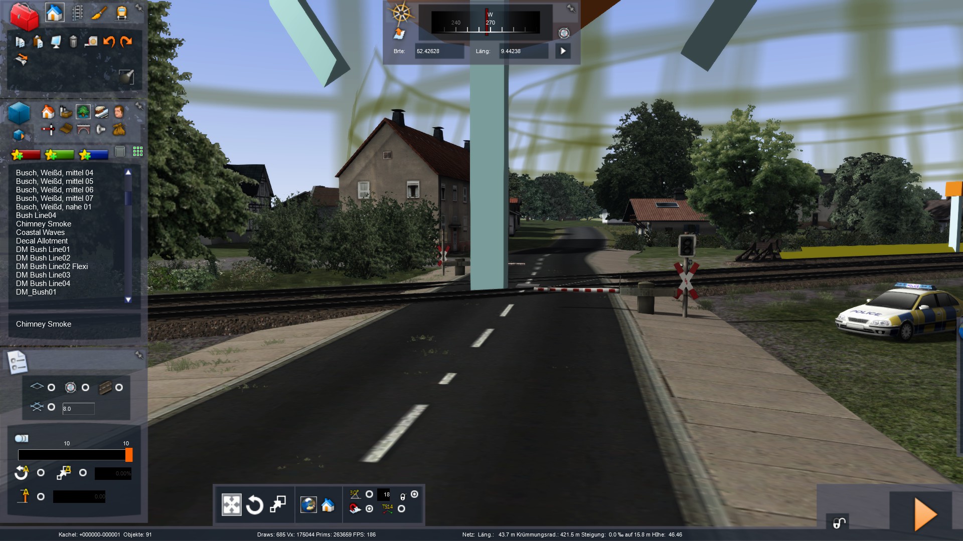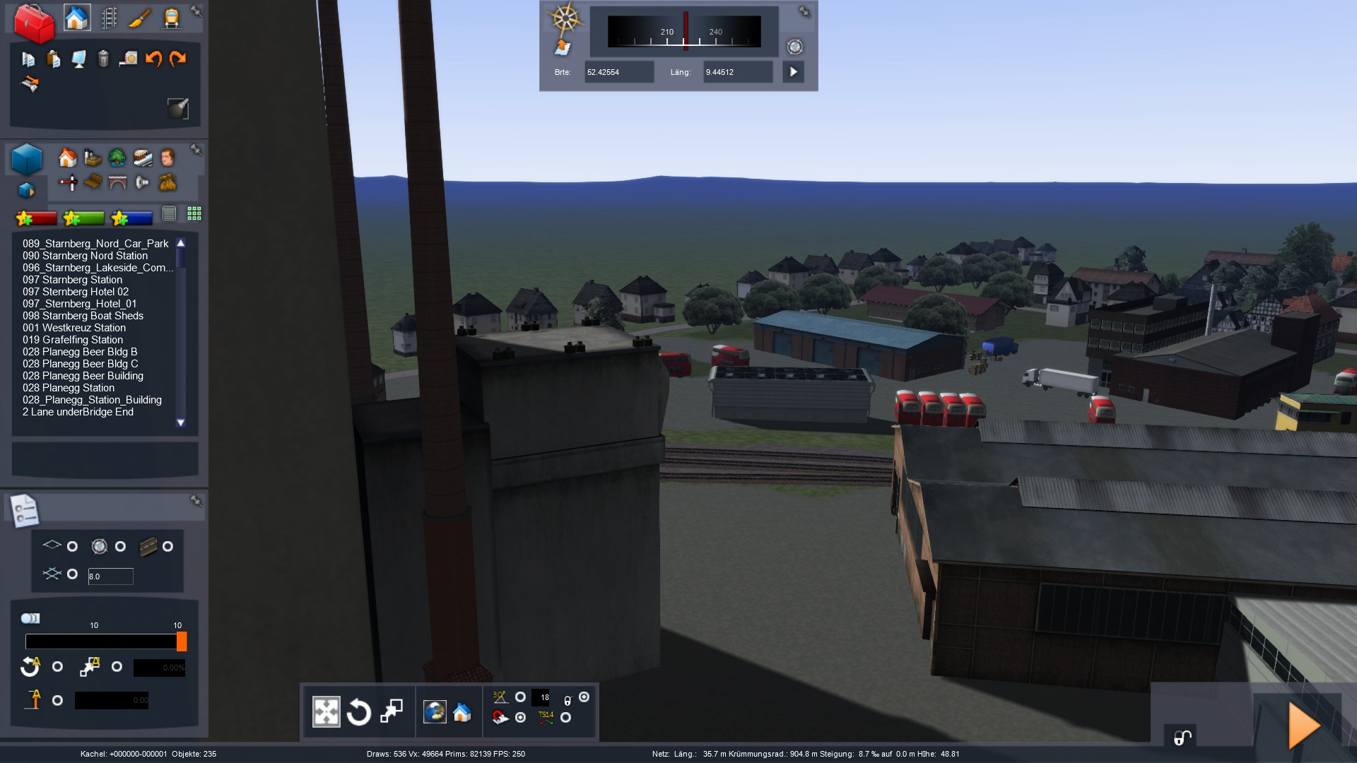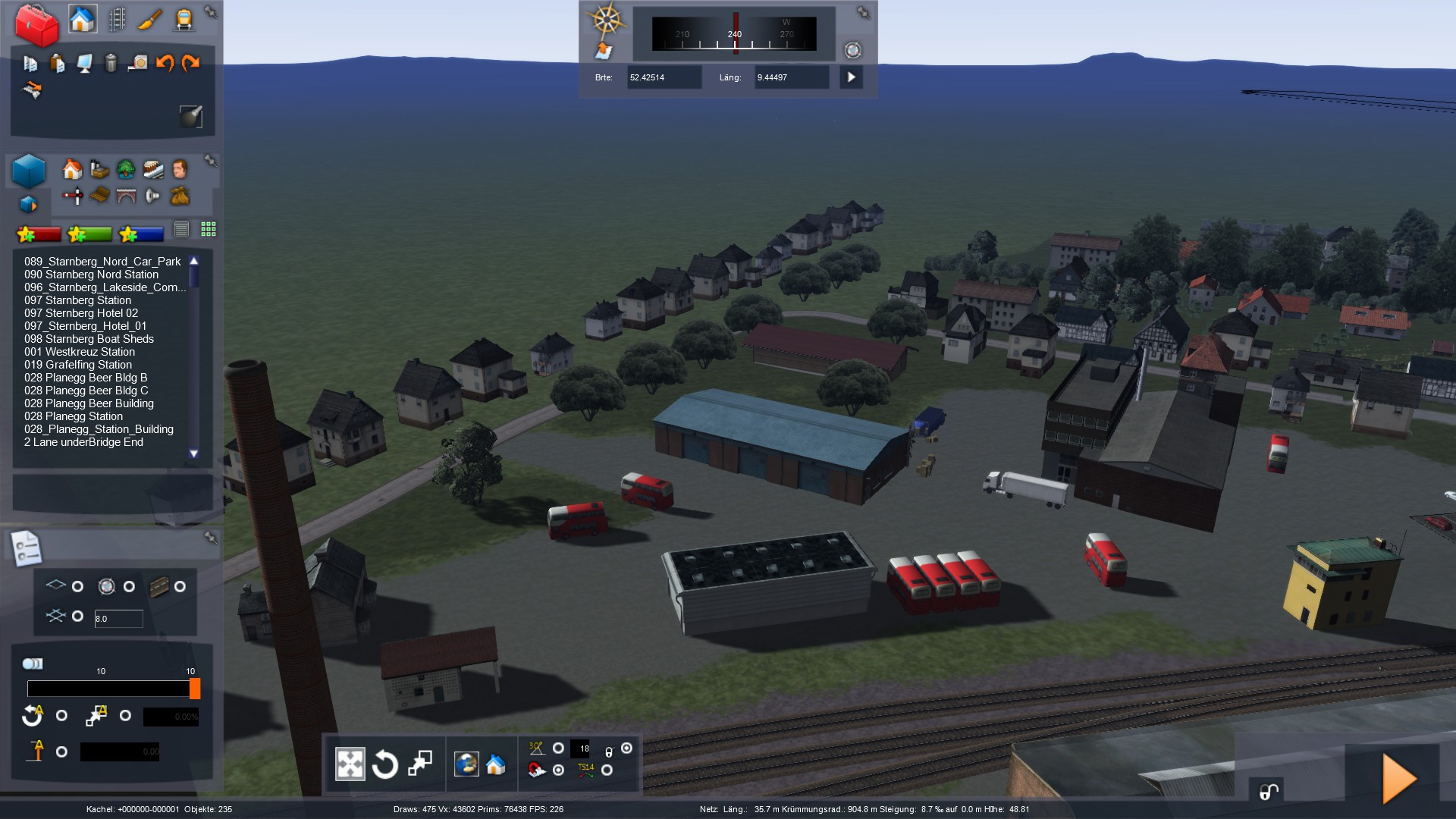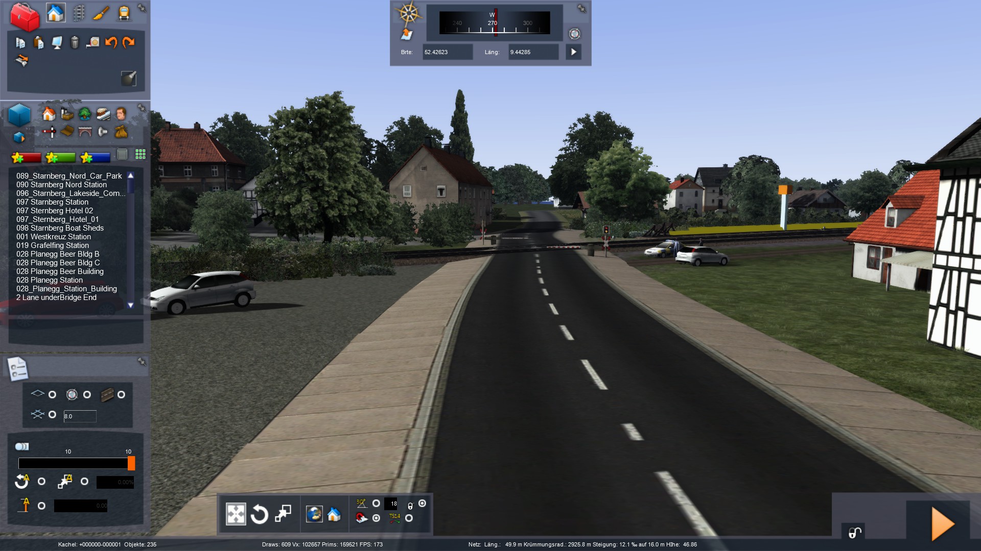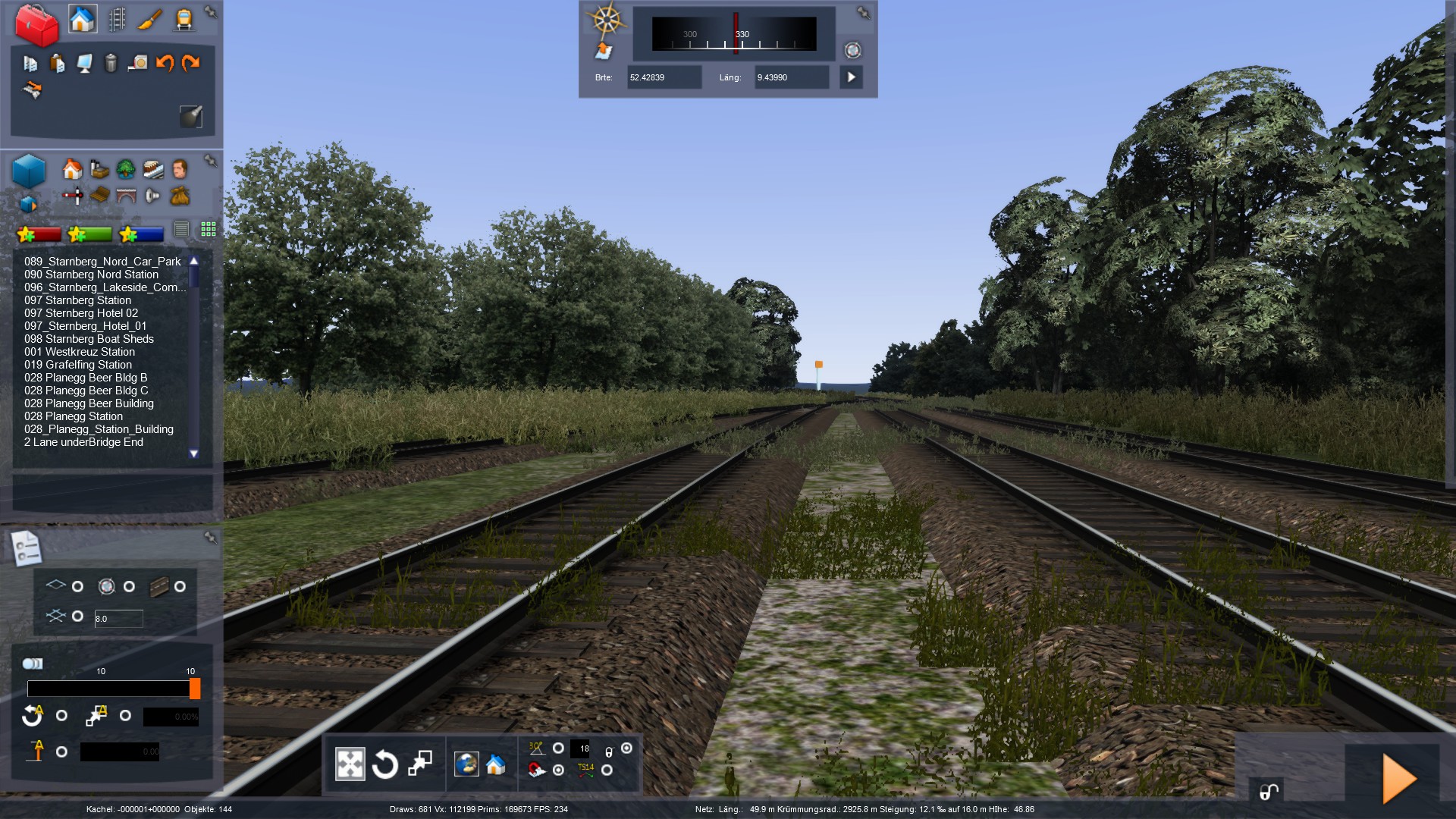 So. mal wieder ein Stück weitergekommen. Ich baue aktuell die Stadt Wunstorf, die um die ersten Kilometer der Strecke herum liegt. Relativ aufwendige Sache mit den ganzen Häusern und Gärten... Wenn ich mit dem Stadtgebiet durch bin, kommt erstmal ein großes Stück Land und Felder. Erst in Bokeloh werden wieder Häuser gebaut
