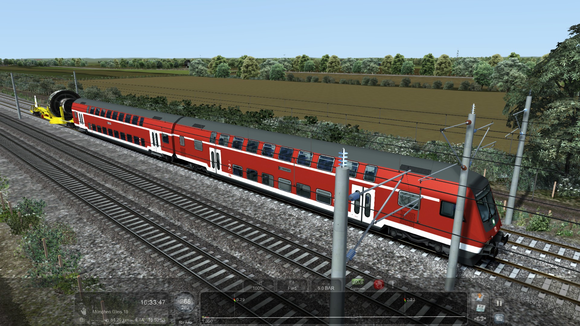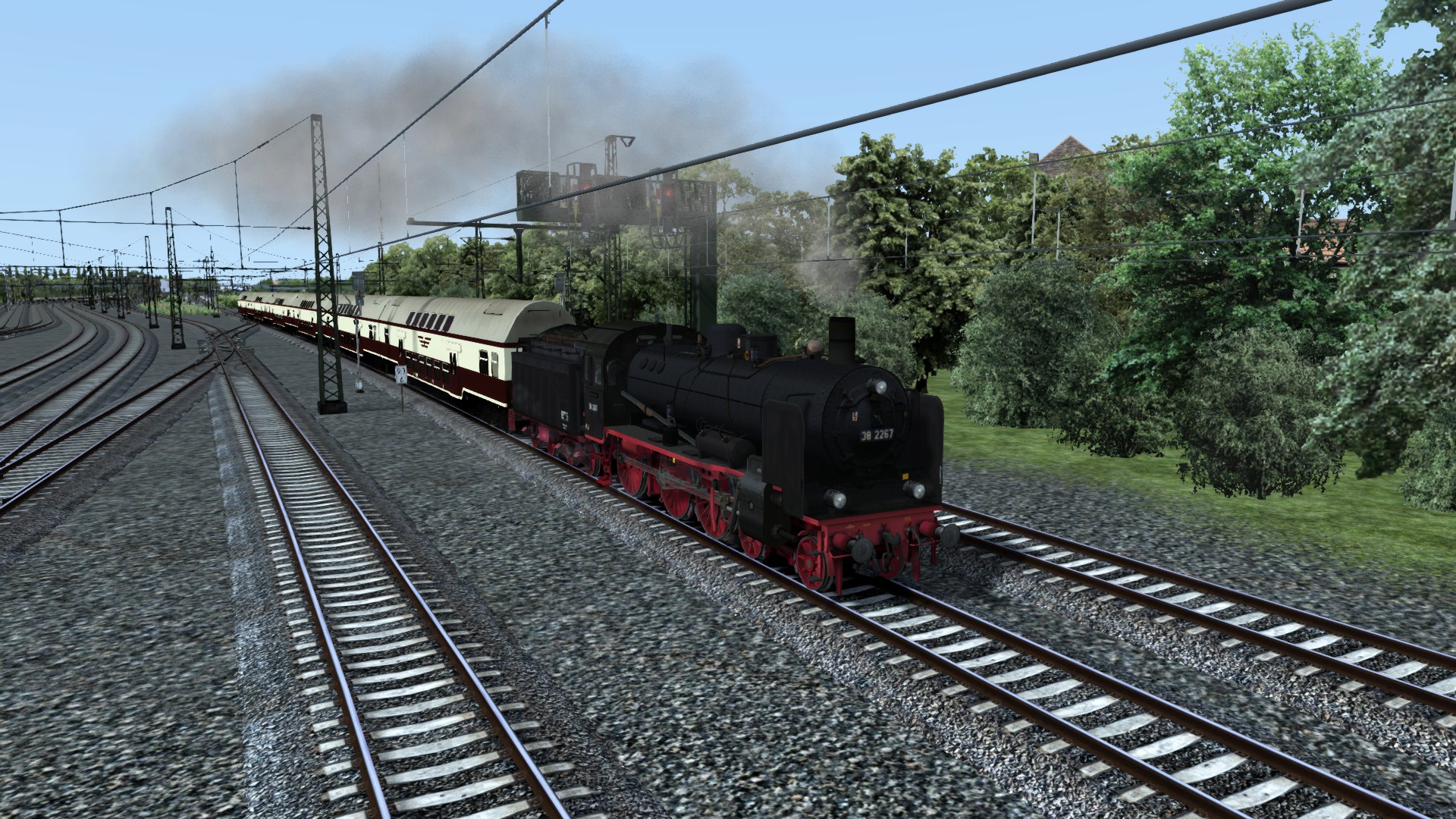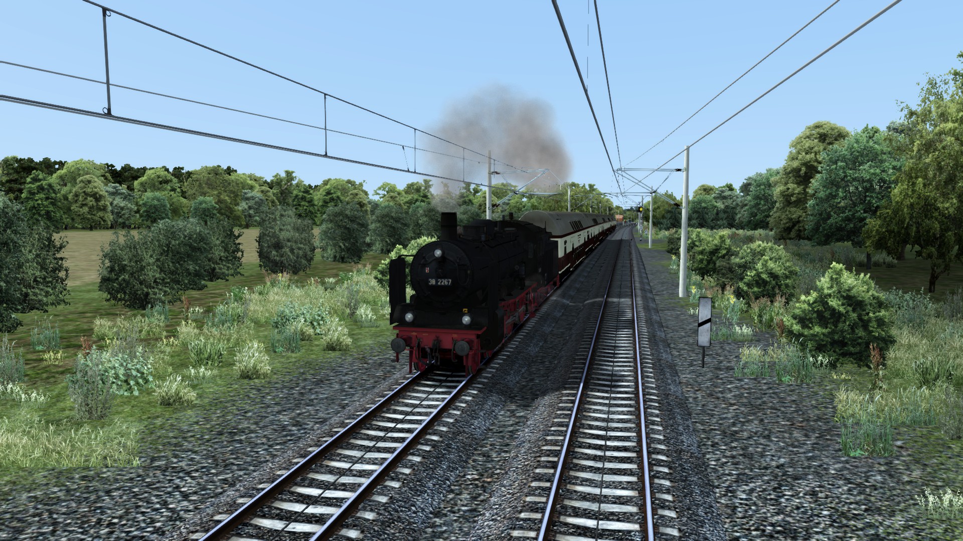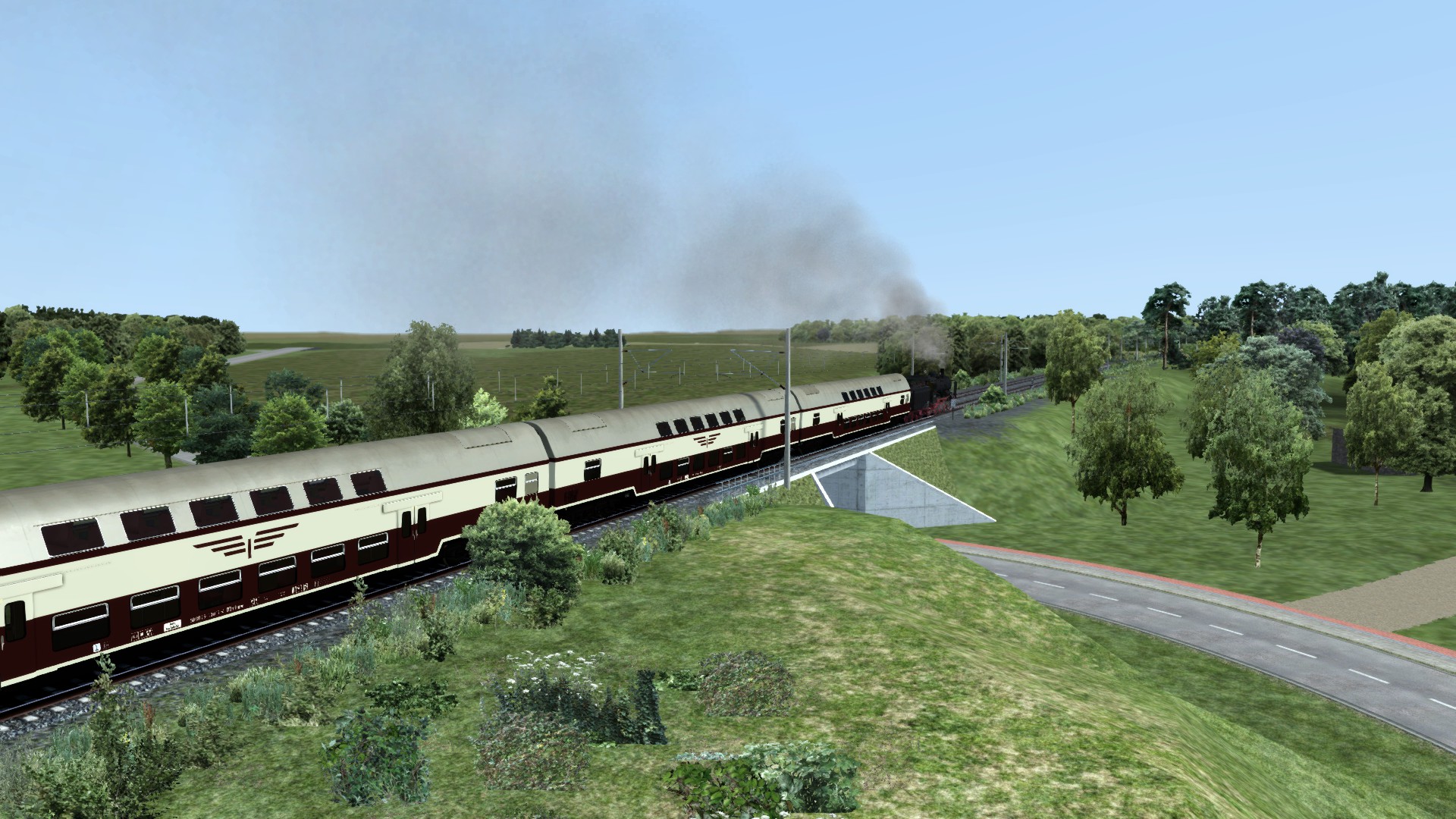 Mal schön in der DDR unterwegs: Br 38 und Doppelstockwagen auf Berlin-Wittenberg in meinem Szenario. (In Entwicklung). Die Strecke ist teilweise etwas karg...