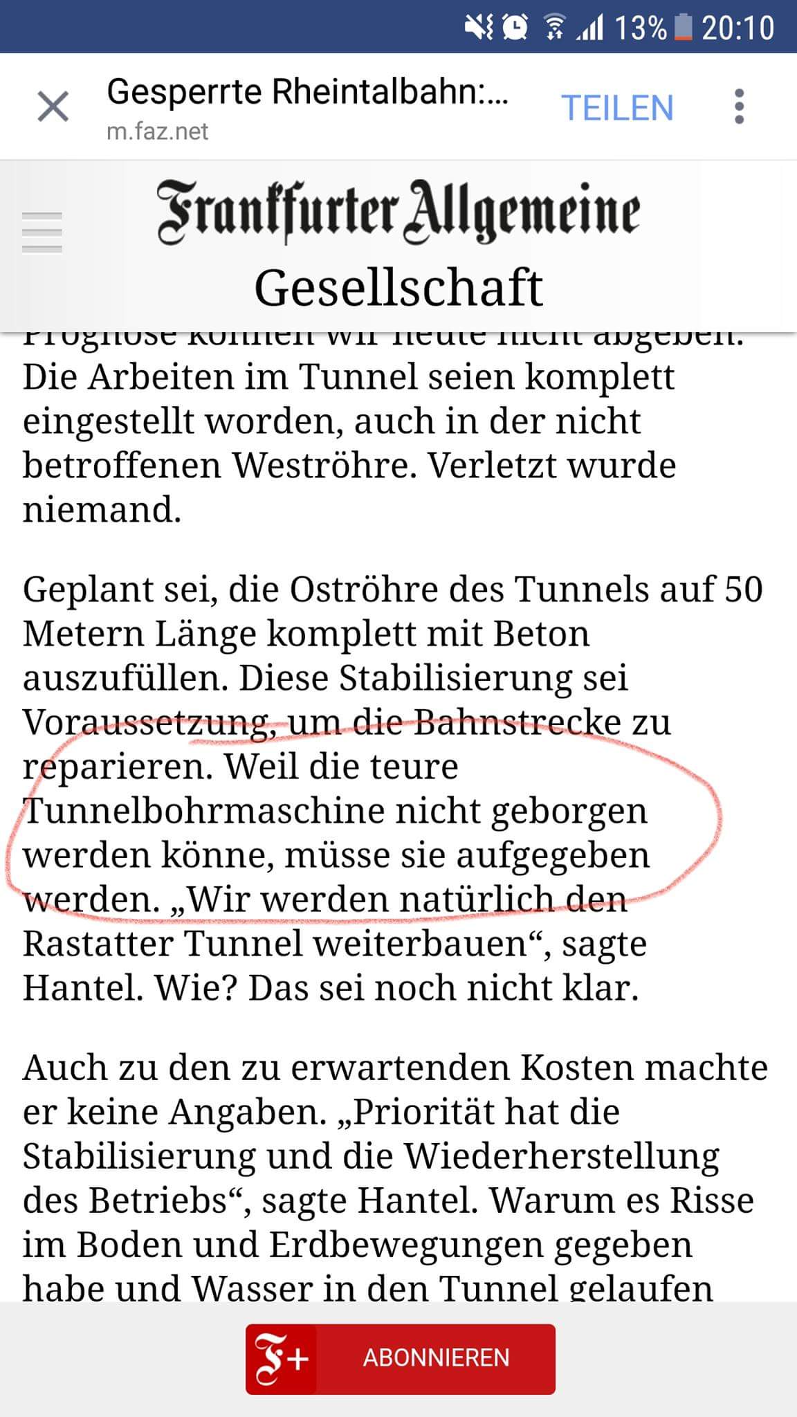Ne Tunnelbohrmaschine ist aufjedenfall schon mal weg