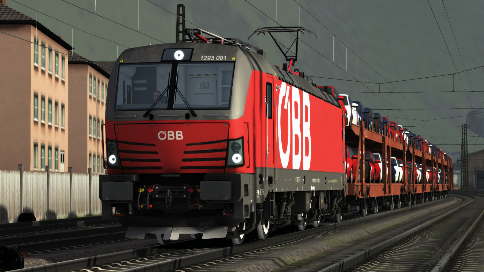 Brand new OBB Vectron 1293-001 with some cars in Almsfled