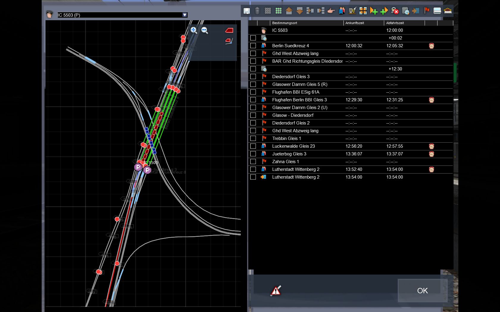 (Das Ausrufezeichen einfach ignorieren, da meckert der Dispatcher nur wegen einem Statischen Zug der aber nicht stört im Ablauf)