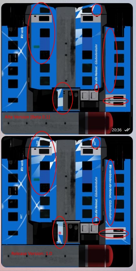 nun ja, Die Datei ist bearbeitet, Der Fehler tritt auch bei keinem von uns auf. Weder bei mir, noch bei @einMonster. Daher wundert es mich doch.... Denn eigentlich ist weder auf der Textur noch in der alpha irgendwas von einem DB Logo übrig. Es kann doch nicht sein, dass das Problem bei manchen Auftritt, bei anderen nicht.