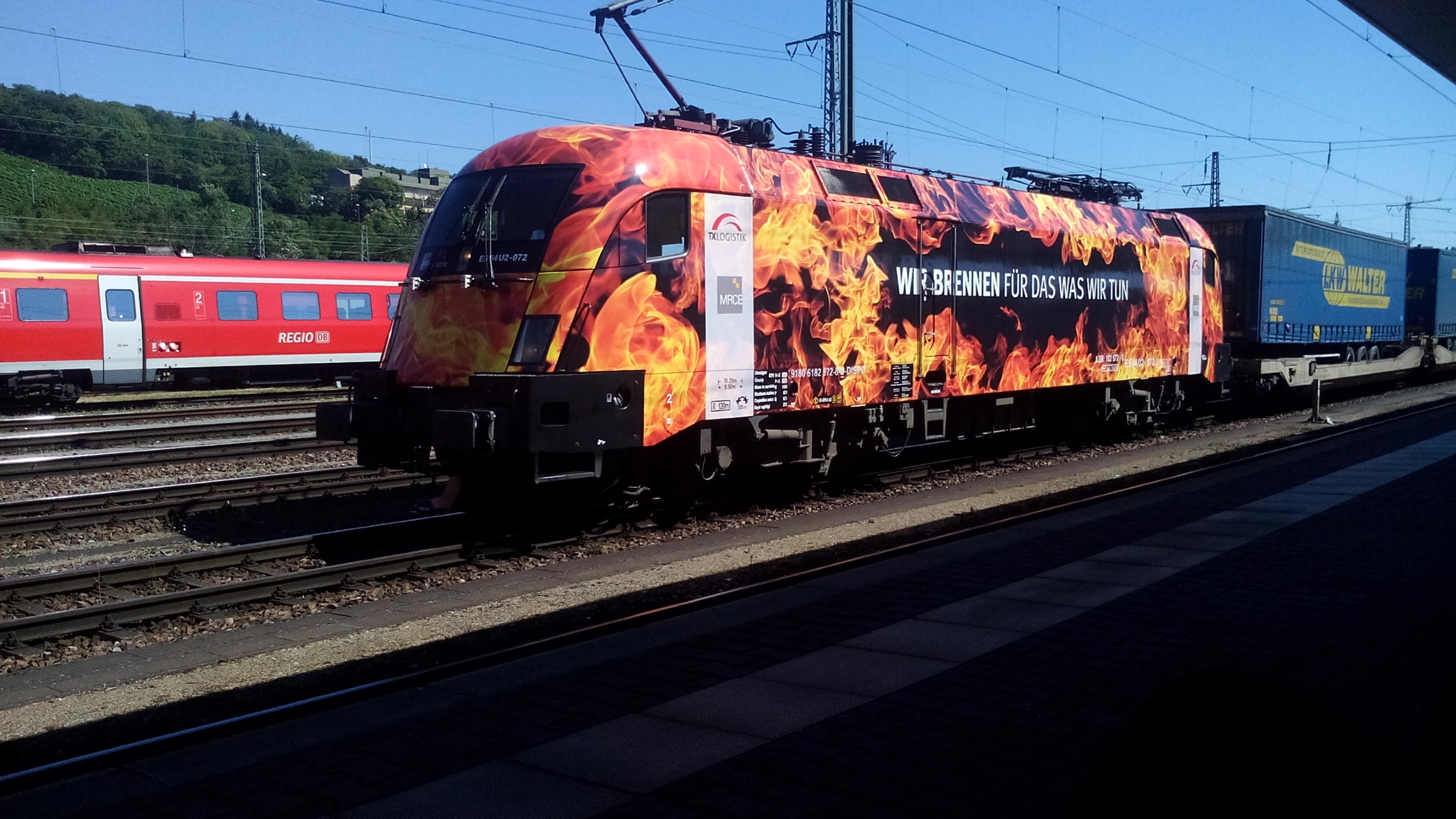 jedoch hab ich nur ein Foto gemacht, da wir mehr mit reden und Kaffee trinken beschäftigt waren , was ja auch der Sinn des Treffens war, zudem hatten wir Kamera dabei. Verzeiht mir das folgende Bild, denn es ist Handy gemacht, jedoch ist die Lok einfach nur heiß, man könnte sagen, sie steht in Flammen.