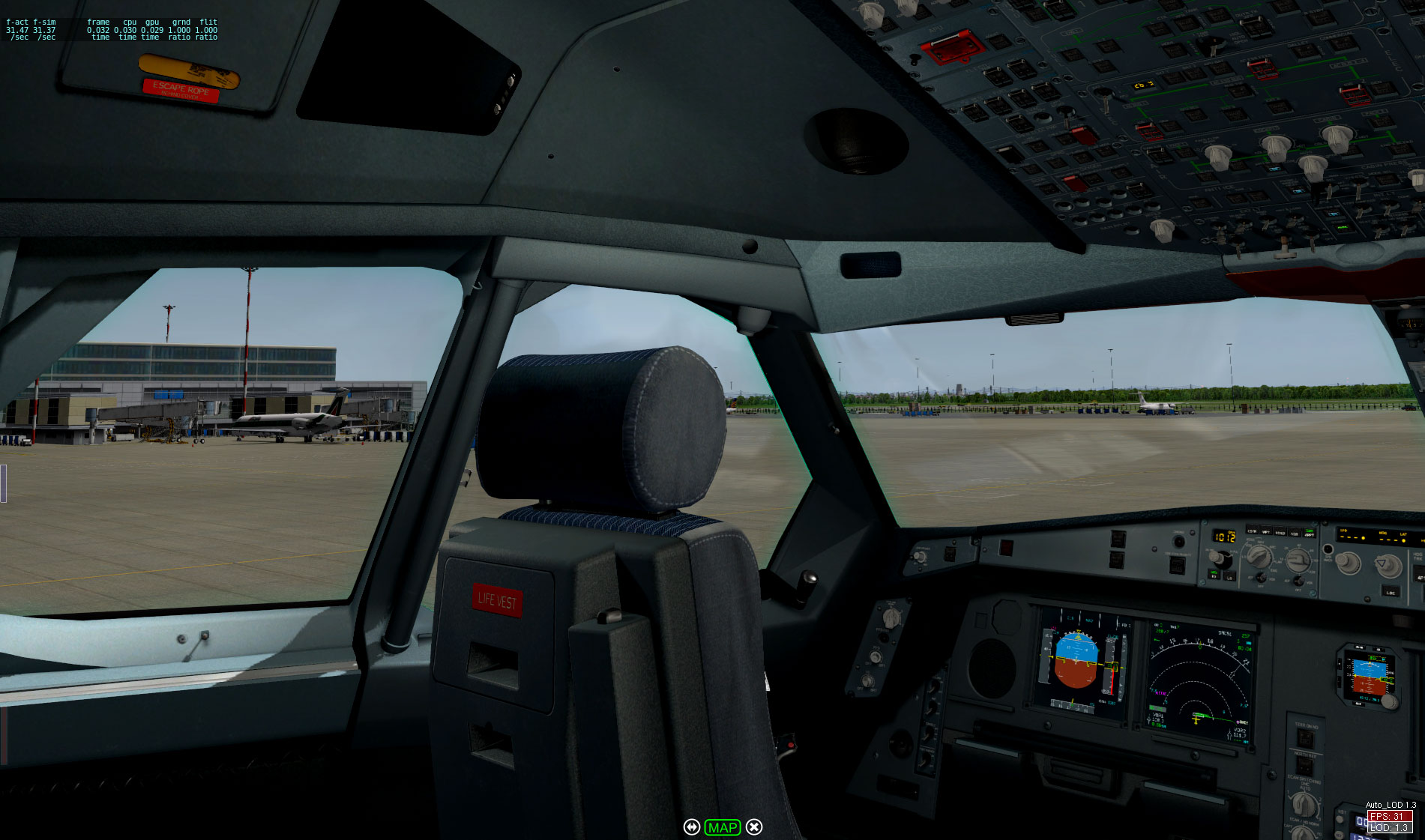 Cockpit Ansicht, von EDDB sieht man da leider nicht viel