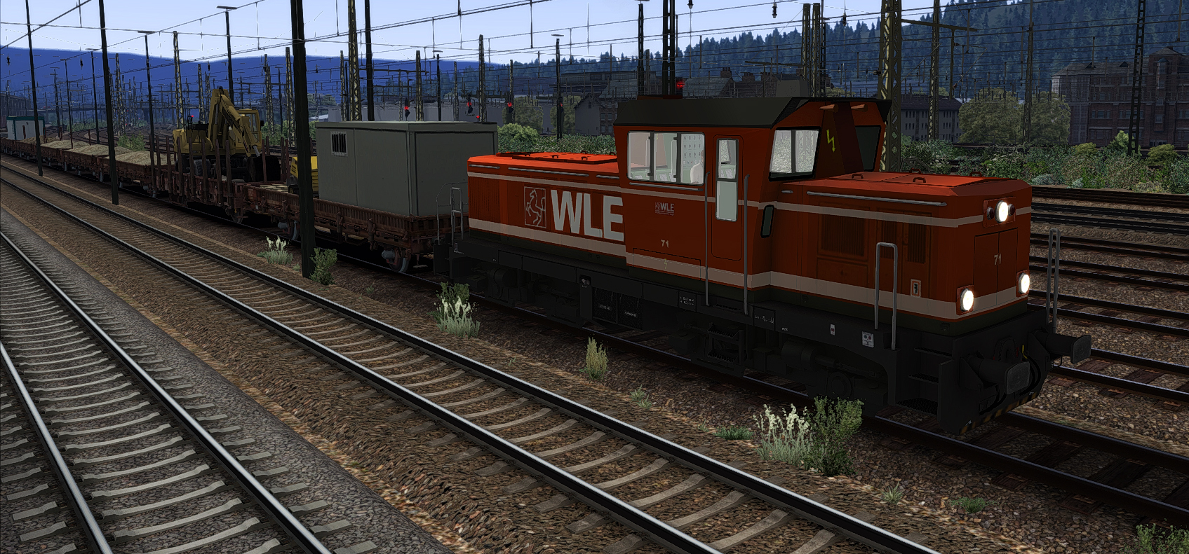 Bis es weiter geht, zum Zeitvertreib hat sich die WLE 71 vor einem Bauzug nach Hagen verirrt ...