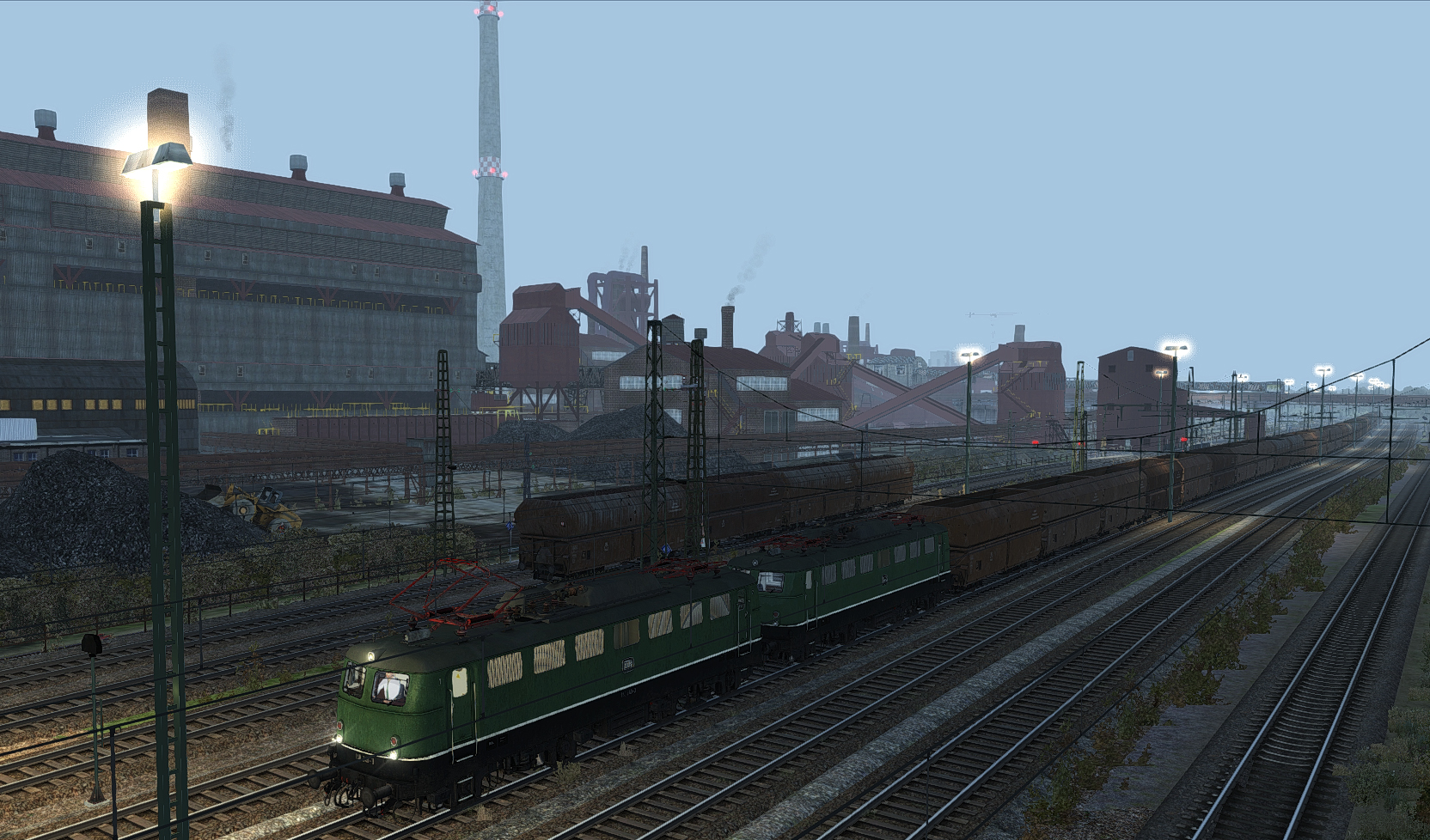 Ich habe ehrlich gesagt keine Verbesserung erwartet, man kann den Bock mit so einem kosmetischen Update nicht mehr umstoßen (weil die Hälfte der Assets rausreissen, inkl. AtomMutanten-Vegetation das ist kein Honiglecken). Hoffe aber dass die Jungs draus gelernt haben, die Absicht ansicht eine tolle Strecke zu bauen ist ja absolut zu loben (dazu meine Heimatstrecke, Danke nochmal!). Ich bin ja selbst so ein Spezialist, akzeptiert es einfach mal wie es ist, im Bild anbei aus meiner Teststrecke aus Dillingen (zwar Saar aber der Zug geht natürlich die Mosel hoch) kann man brav die vR DT aufstellen, vielleicht noch ne 3 und 4. Lok, dann noch 10-25 Güterwagen, ja und dann... die Kachel mit dem Stahlwerk drauf ist einfach überlastet, es gibt natürlich schon KI und Rollmaterial was besser läuft. Immerhin "sieht" man da noch was für sein Geld und der droße Unterschied, war ja ein Test um genau hier mal zu sehen was geht, aber wenn ich in Bengel gekillt werd, neee ;-))