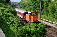 Des weiteren hast du einen zu hohen ISO-Wert verwendet. Das bewirkt ein Farbrauschen (an der Front der Lok gut zu sehen) welches sich über das ganze Bild zieht. Dieses Farbrauschen ist fast nicht zu kaschieren und versaut einem gerne mal die Fotos.ich habe mal versucht den Farbfehler bei deiner Aufnahme zu beheben... ist mir allerdings nur mäßig gelungen, ich hänge das Ergebnis mal mit an. Die Helligkeit, Detailstufe und Schärfe gehen runter. Also an sich wird letztendlich das Motiv, welches eh schon nicht so gut gelungen ist, nicht retten lassen. Als aller letzes hilft dann nur noch das verkleinern des Fotos um zu kaschieren.