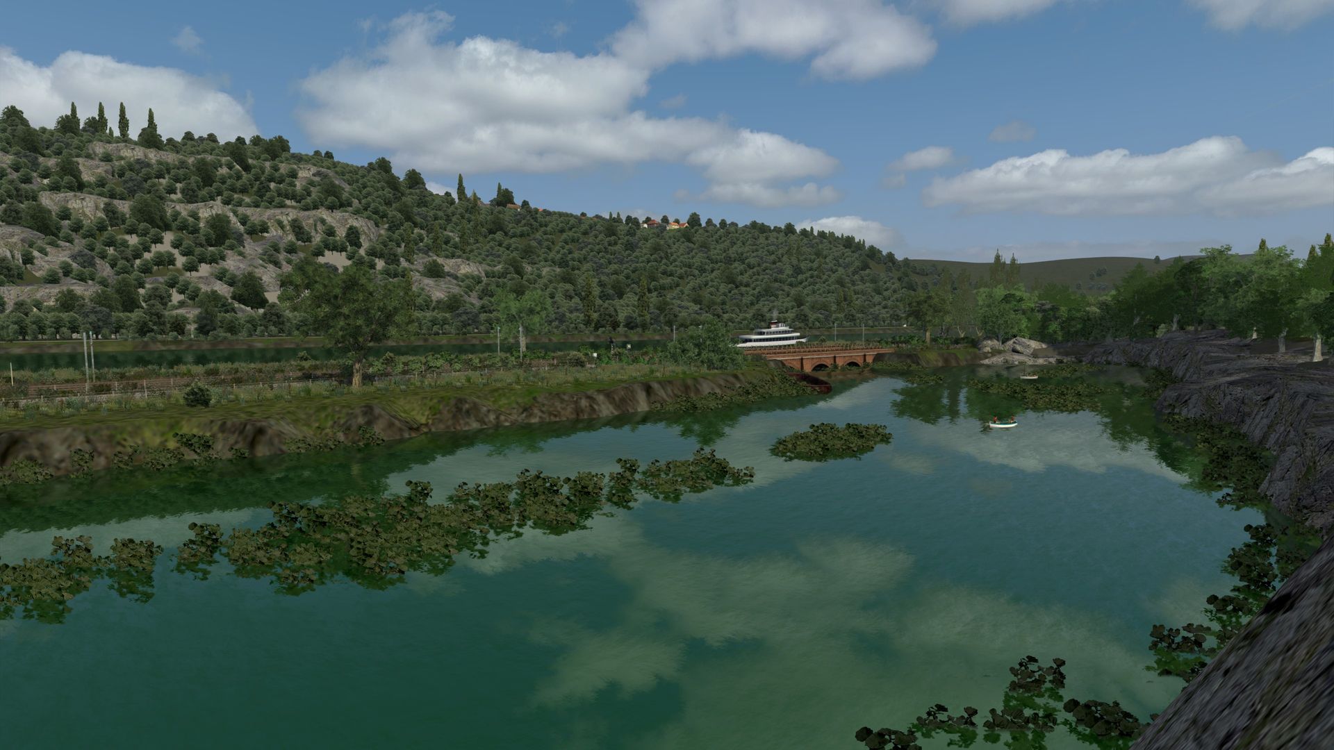 Meine kleine virtuelle Bahnreise führte mich nach Frankreich und zurück in die 1960er bis 1970er Jahre, so schätze ich es ein. Die fiktive Strecke "La Vallée" wurde vom französischen Freeware-Hersteller Zawal, der sehr viel Strecken erstellt hat. Die deutsche Übersetzung von La Vallée ist "Im Tal" und so ist es wirklich. Die durchweg elektrifizierte Strecke führt am Fluss entlang. Sie hat eine Länge von ca. 48 Kilometer mit vielen kleinen Hafenlagen, Tunneln, Brücken. Die Strecke ist meiner Meinung sehr, sehr gut ausgestaltet worden, hier brauch von der Vegetation nichts verändert werden. Der Mix aus 2D und 3D Vegetation ist gut getroffen. Nach Anmeldung/Registrierung bei RW-Central https://www.rwcentral.com/file…%C3%A9e-2017-2d-by-zawal/ oder https://www.railsim-fr.com/for…e-2017-rails-2d-by-zawal/ und zusätzlich noch der Link zu den Assets -Packs https://www.railsim-fr.com/for…3%A9lectrifi%C3%A9e-2017/.