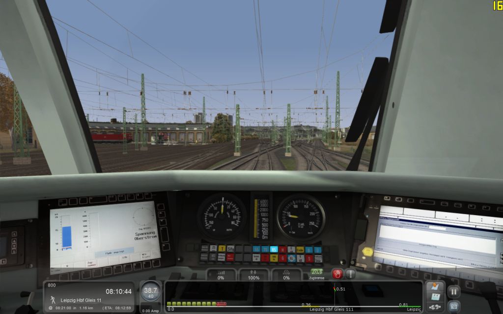 nun, wie ich im Eingangsbeitrag schrieb, fahre ich LZB geführt und es war noch deutlich mehr als ein Balken für die Zielentfernung zu sehen, ich war bestimmt noch 300 m vom Signal weg. Und ja, ich bin im durchgehenden Hauptgleis zum Stehen gekommen. Hier die gewünschten Bilder: