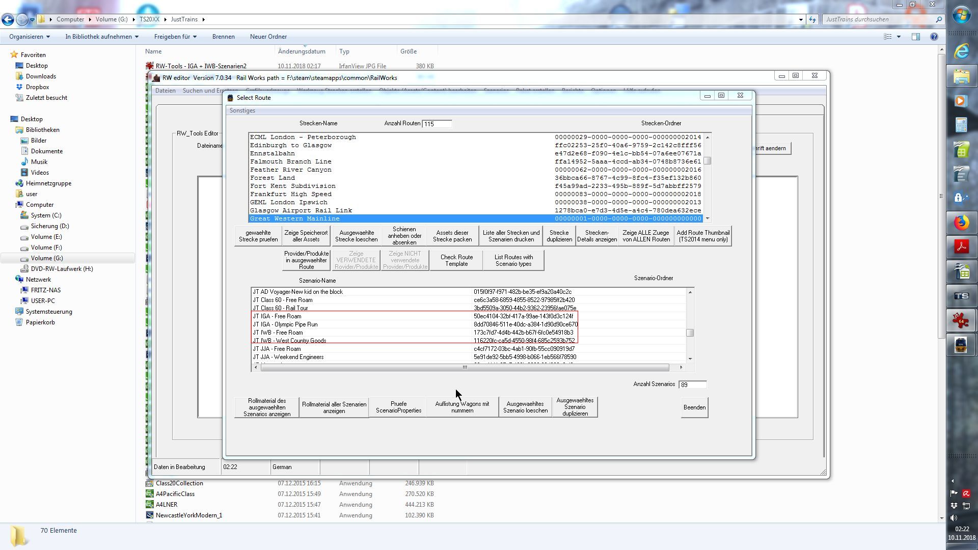 Ich habe RW-Tools befragt mit diesen Ergebnissen:Im Spiel stellt sich heraus, daß die Szenarien, und nicht nur die der IGA-Wagen, sondern auch der IWB-Wagen ganz wo anders waren, nämlich hier: