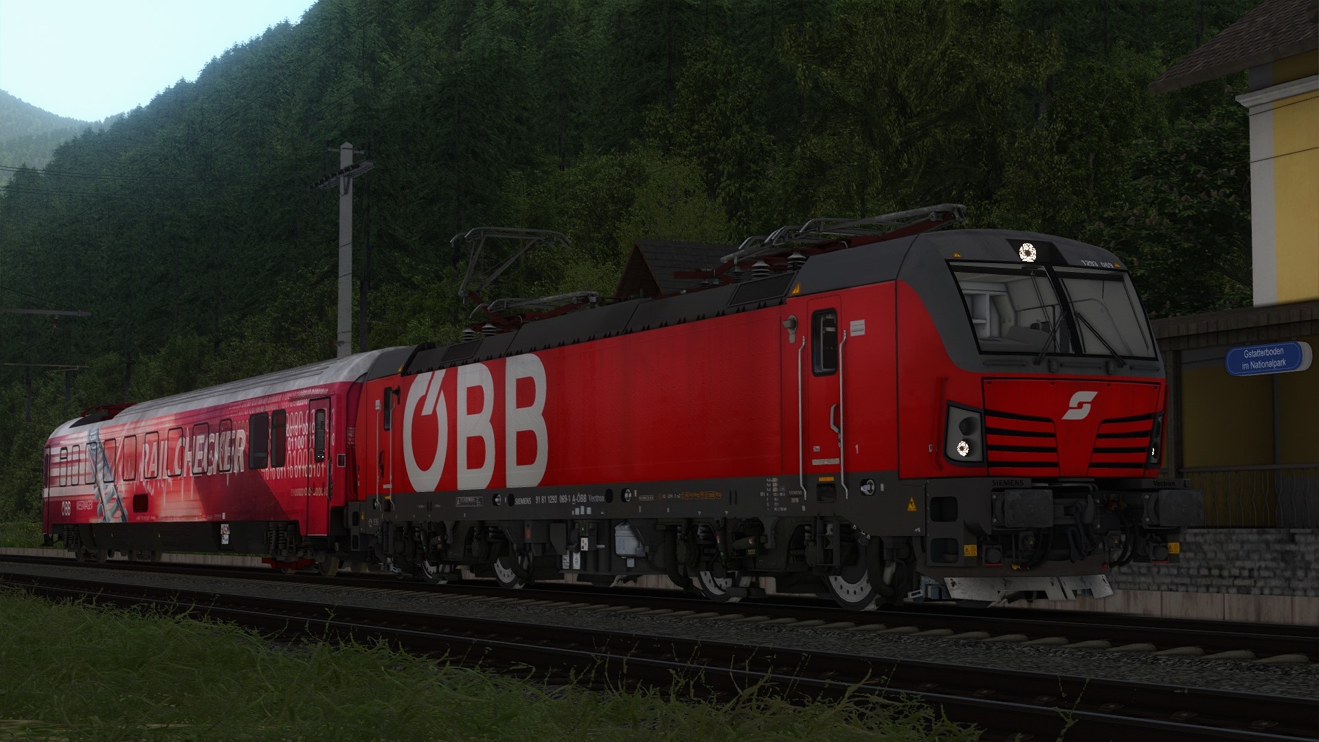 1293 069 mit einem leeren Bauzug bis Bischofshofen unterwegs