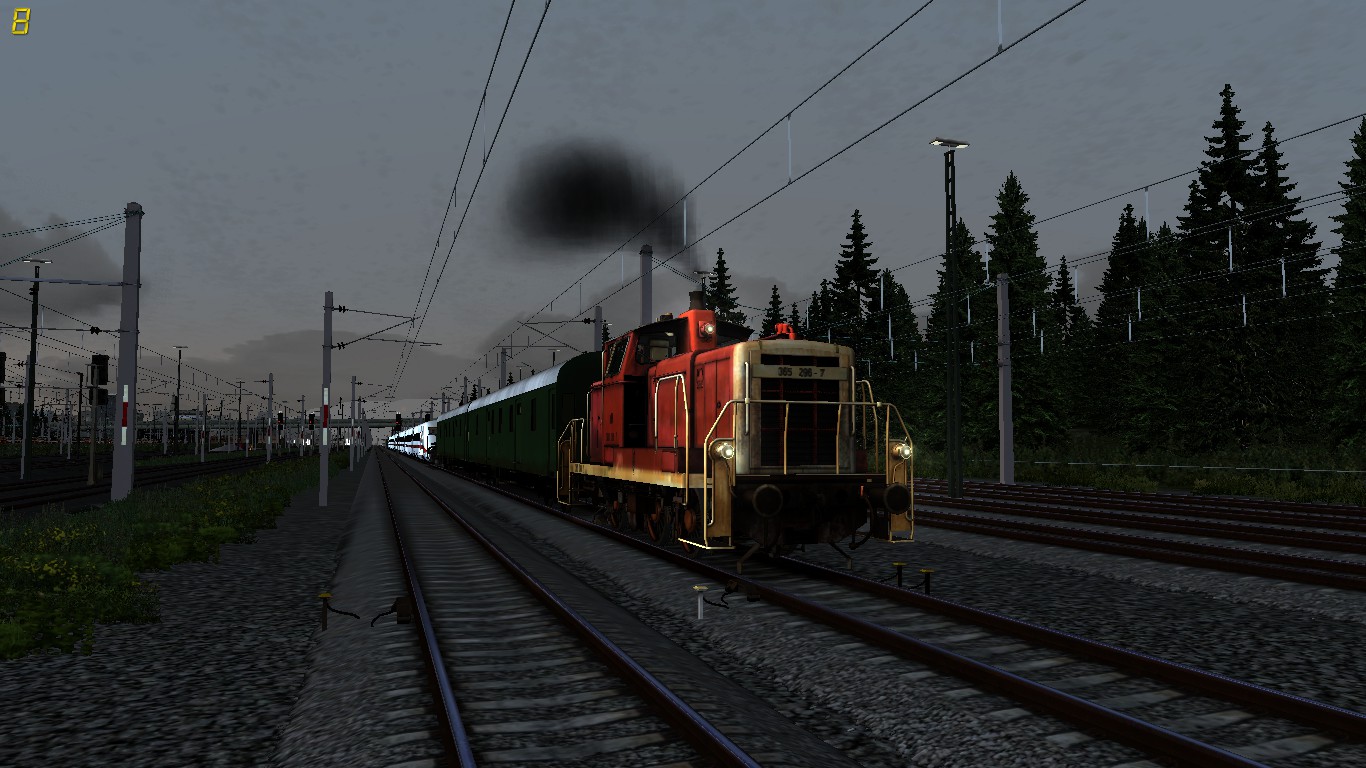 Ich habs neu installiert. Anschließend Cache geleert und ne kurze Testfahrt im QD gemacht, alles klappt. Gefreut und den Editor angeschmissen um ein Szenario zu bauen, in dem man einen REX über die gesamte Strecke fährt. Soweit so gut, also die den Zug ziehende 1144 platziert, 5 Cityshuttle-Wagen drangeklatscht und einen vor der Abfahrt aus der Gegenrichtung kommenden Güterzug platziert. Beide bekamen ihren Fahrplan, dann hab ich mit dem Blick zufällig ein Signal gestreift, dieses war... DUNKEL. Aus der Ferne sieht es so aus, als wäre das Licht plötzlich wieder hinter dem schwarzen "Korpus". Ich bin grad ratlos. Hast du noch ne Idee @Sierra64 ?