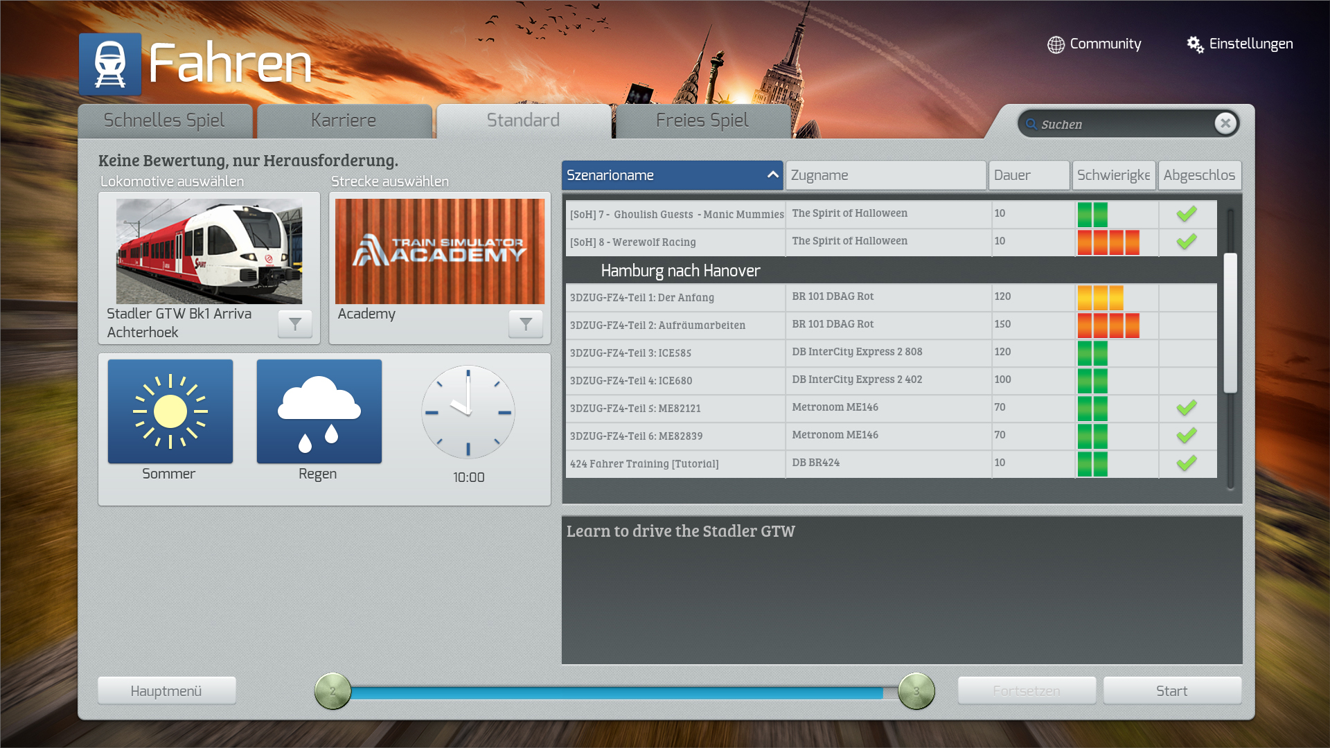 Ich habe die normalen Szenaro's angeklickt. Contact gehabt mit betastreckenmanufacteror.