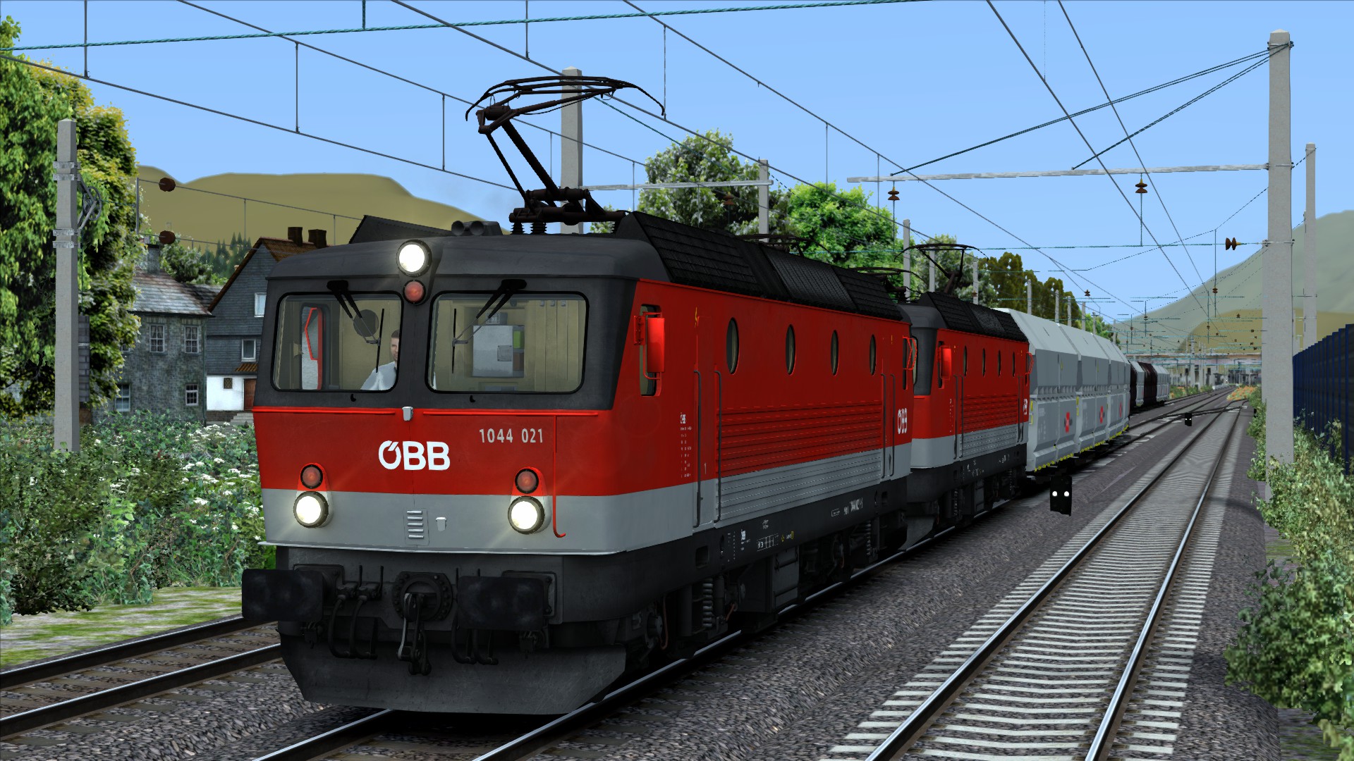 Doppeltraktion ÖBB Rh 1044 mit 40 Falns. Dieser Zug transportiert Sand von Lindau-Reutin nach Innsbruck (