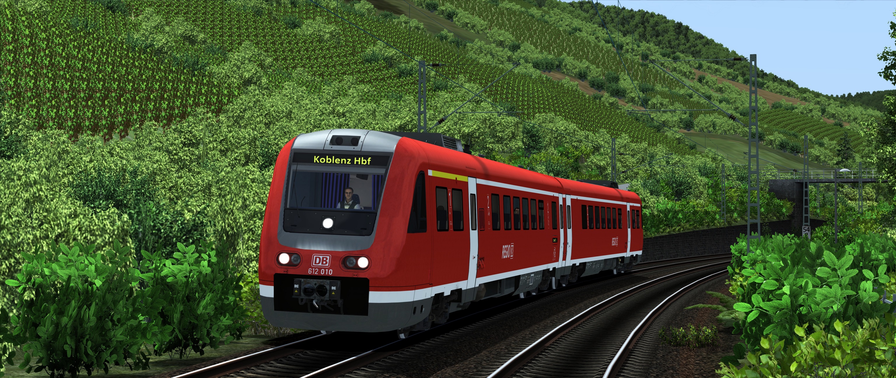V 1.02 neu Installiert und mit den neuen Gleisen versehen. Fahre auf Max. Settings mit vR IC STW von Koblenz nach Trier mit ein paar TTB KI.